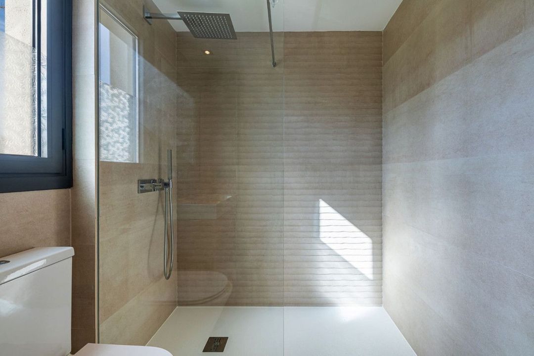 Each of the three bedrooms is thoughtfully designed with comfort in mind, featuring built-in wardrobes and large windows that allow for plenty of sunlight. The master bedroom includes an en-suite bathroom, while the additional two bedrooms share a well-appointed family bathroom. Both bathrooms boast contemporary fixtures and elegant tiling.