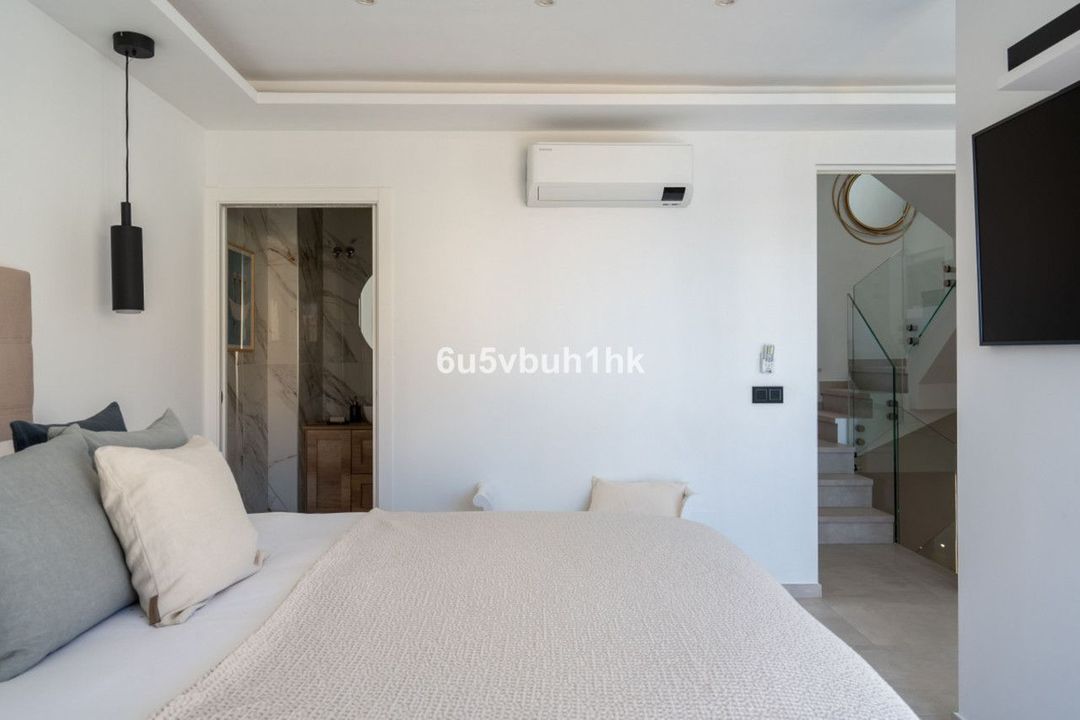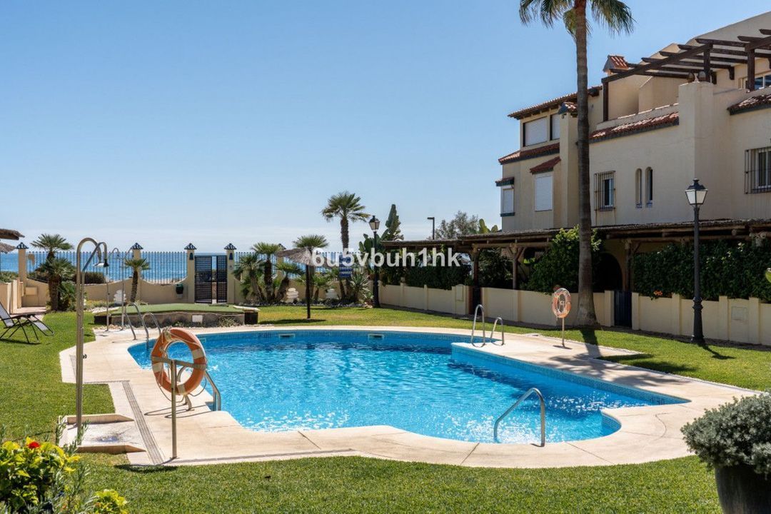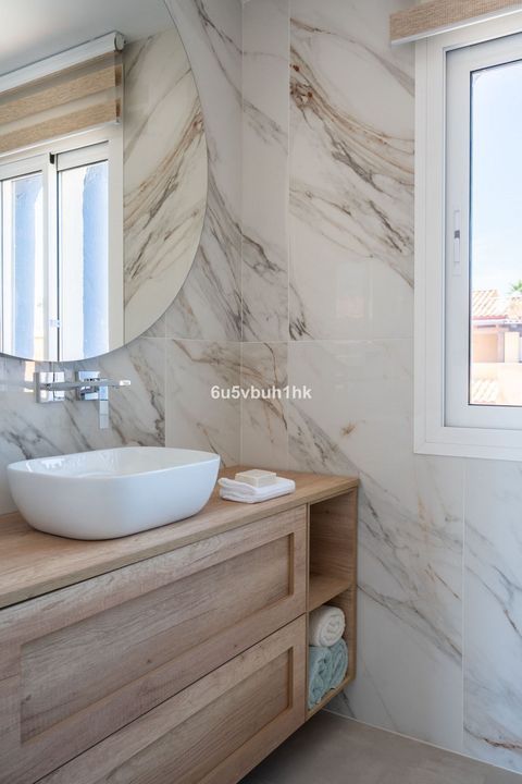 A well distributed bright south facing townhouse built over three floors, in a small beachfront community of houses, with direct access out to the beach through the community gate. The property has been fully reformed to a high standard with new carpentry, solar panels, security blinds, alarm and many personal touches and modern appliances. It has floor to ceiling windows, and good quality finishes throughout.