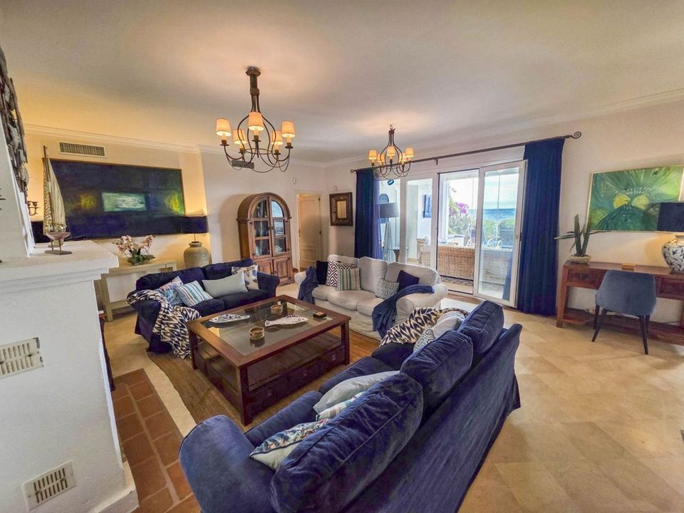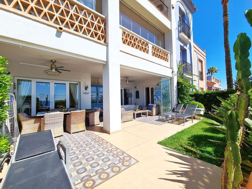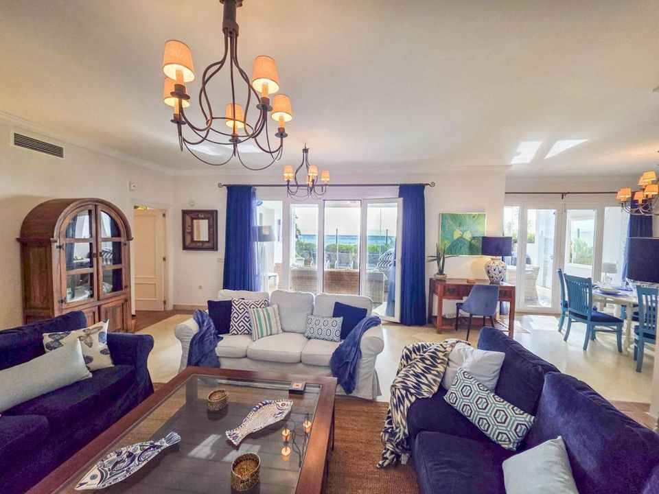 Met een uitstekende ligging aan het strand met directe toegang tot het kustpad en het strand van Casares, op slechts enkele minuten van de golfbaan Finca Cortesín, een van de meest prestigieuze golfbanen in Spanje, waar talloze spraakmakende evenementen zijn georganiseerd, waaronder driemaal het Volvo World Match Play Championship en de Solheim Cup van 2023. Op slechts 10 minuten rijden van Estepona en 4 minuten van San Luis de Sabinillas met zijn prachtige en pittoreske Puerto de La Duquesa. Dichtbij supermarkten, scholen en het nieuwe ziekenhuis van Estepona. Dit GROTE APPARTEMENT OP DE BEGANE GROND MET PRIVÉ-TUIN EN UITZICHT OP ZEE, HEEFT DIRECTE TOEGANG TOT HET STRAND en ligt OP HET ZUIDEN. De woning beschikt over een ruime hal die leidt naar de ruime woon-eetkamer met grote ramen die aansluiten op het grote overdekte terras. Dit terras is voorzien van glazen gordijnen en zorgt ook voor veel natuurlijk licht en een prachtig uitzicht op de zee en de tuin vanuit het huis. Daarnaast is de open keuken volledig uitgerust en beschikt over een wasruimte. Deze gemeenschappelijke ruimtes beschikken over een gastentoilet, gelegen naast de ingang van het huis. De drie slaapkamers van het huis liggen aan de woonkamer. De twee gastenkamers beschikken over grote ingebouwde kasten en grote ramen met uitzicht op de prachtige gemeenschappelijke tuinen. Ernaast bevindt zich een complete badkamer met ligbad en vloerverwarming. De ruime hoofdslaapkamer beschikt over een kleedruimte en een en-suite badkamer met een bubbelbad, een aparte douche, dubbele wastafels en vloerverwarming. Deze slaapkamer heeft ook directe toegang tot het privéterras. Het huis beschikt over prachtige en goed onderhouden gemeenschappelijke ruimtes met verschillende zwembaden en ideale tuinen. GEWELDIGE KANS OM DE LUXE TE ERVAREN VAN EEN HUIS AAN DE KUST VAN DE MIDDELLANDSE ZEE!!