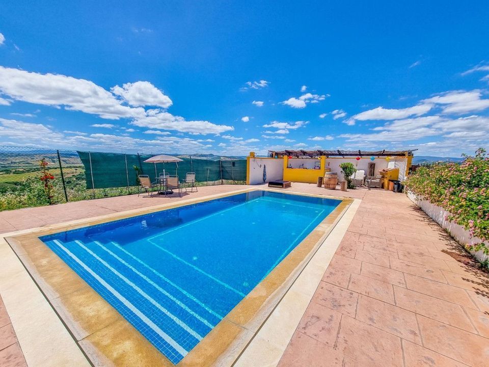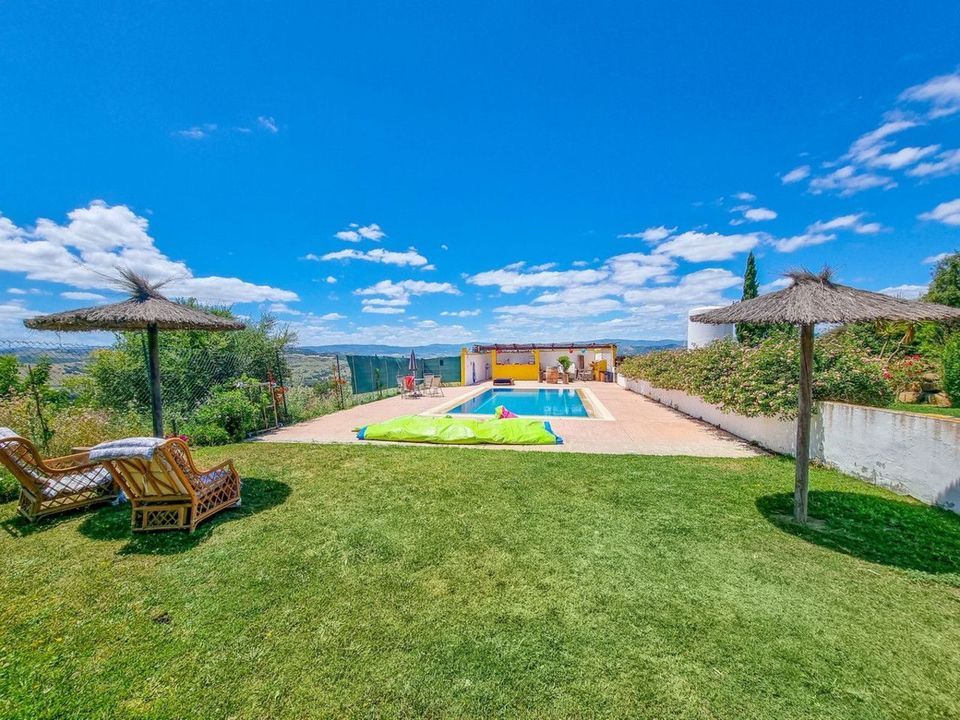 De buitenruimte van deze finca is adembenemend: groot zwembad en tuinen, er zijn zelfs parasols geïnstalleerd! er is ook een barbecue en een lounge, de perfecte plek om familie of vrienden te ontvangen terwijl u geniet van het fantastische uitzicht op de bergen en de privacy en rust van het leven op het platteland.