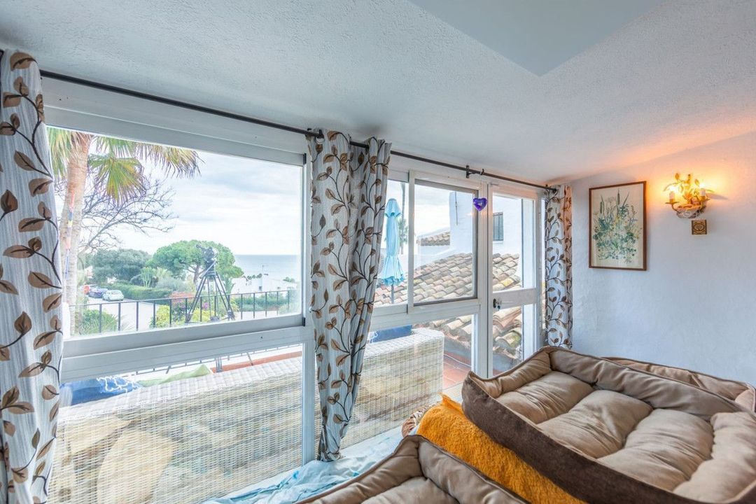 De bovenverdieping beschikt over een ruime hoofdslaapkamer met hoog plafond en balkon, evenals een aangrenzende slaapkamer die ook gebruikt kan worden als kantoor of werkruimte, beide met prachtig zeezicht. De complete badkamer, eveneens met hoog plafond, beschikt over een ruime inloopdouche.