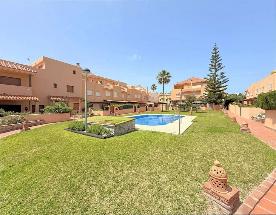 Wonderful beachfront townhouse in Casares Costa! This exclusive property is located within a quiet and private residential complex featuring spacious green areas, a communal pool, and direct access to the stunning sandy beaches of Casares. It also connects to the extensive promenade that runs along the Costa del Sol, offering a wide variety of bars, beach clubs, and leisure areas. Ideally situated between Estepona and La Duquesa marinas, just a 4-minute drive or a pleasant walk away, the townhouse enjoys a south-facing orientation and breathtaking sea views from every room. The home is distributed across three levels. The main floor features a bright and spacious living room with large windows that open onto a private terrace, located right in front of the sea, just steps from the beach and beach bar. On the first floor, there are three generously sized bedrooms and two bathrooms, one of them en-suite, all with open views of the Mediterranean. The top floor offers a fourth bedroom with complete privacy and access to a large solarium terrace with panoramic views over the entire coastline. This property is ideal both as a permanent residence and as an investment, thanks to its strong rental potential for both holiday and long-term lets. It also includes an underground parking space for added convenience. A unique opportunity to enjoy the peace of living by the sea with all amenities nearby, without the need for a car. Viewing is highly recommended to truly appreciate all that this dream home has to offer.