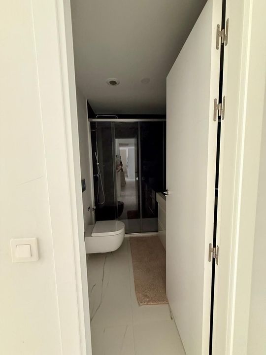 The apartment arrives fully furnished and turn-key ready, allowing new owners to seamlessly transition into their coastal paradise. High-end finishes throughout, from sleek built-in wardrobes to contemporary fixtures, elevate the everyday experience. A standout feature is the expansive terrace and balcony, where residents can bask in stunning panoramic views of the sea and surrounding mountains, transforming simple moments like morning coffee or evening gatherings into unforgettable experiences. Complementing this is a large storage room, thoughtfully designed with ventilation and natural light, providing functional versatility for hobbies, extra storage, or even a home office setup. Parking is abundantly catered to with three dedicated spaces included, plus an already-installed electric car charger to support modern, green transportation needs— with the option to purchase an additional spot for added convenience.
