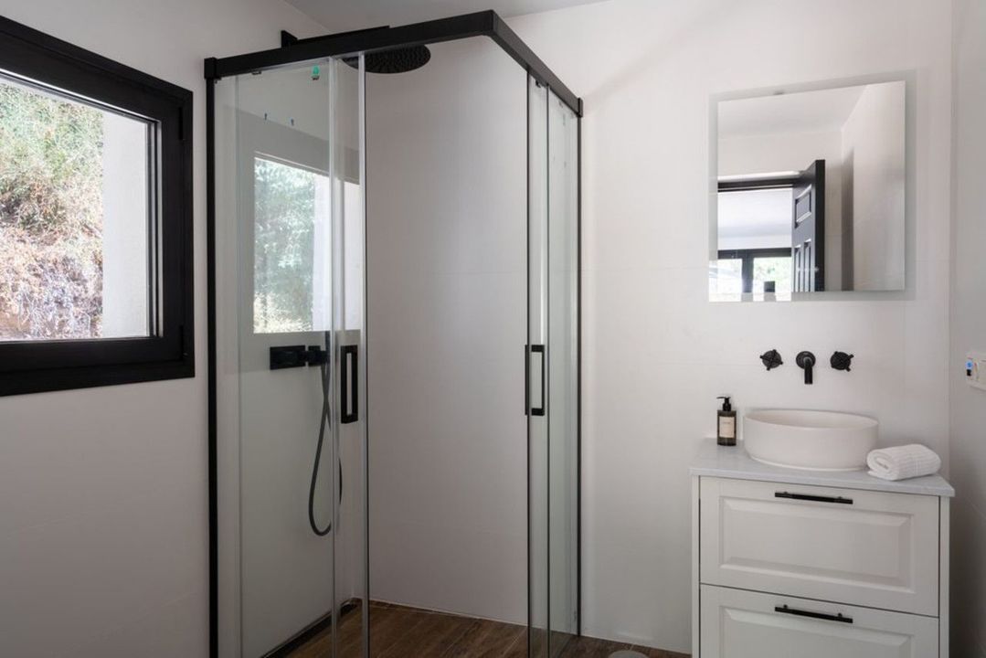 The villa spans 250m² with an additional 30m² separate guest studio, designed with bright open spaces and finished to the highest Scandinavian standards.. On the ground floor, you'll find two bedrooms with bathrooms, while a striking spiral staircase leads to the first floor with an en-suite bedroom and a breathtaking master suite with panoramic windows.