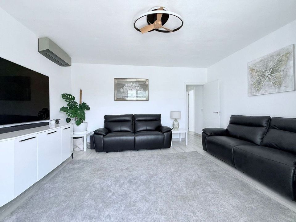 The sleek, high-spec kitchen is a chef's dream, fitted with premium appliances and a picture window that captures stunning rural scenery. A second lounge opens directly onto a large terrace, creating a wonderful indoor-outdoor flow.