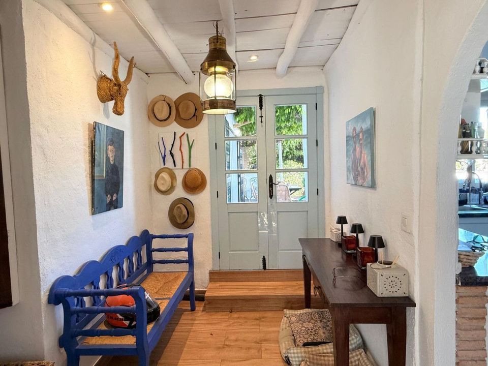 The single-storey house preserves its authentic Andalusian charm, with exposed wooden beams, fireplaces, and cosy corners both inside and out. It includes 5 bedrooms (one with independent access by the pool), 4 bathrooms, a spacious living room with pool views, and a master bedroom with en-suite bathroom and walk-in wardrobe.