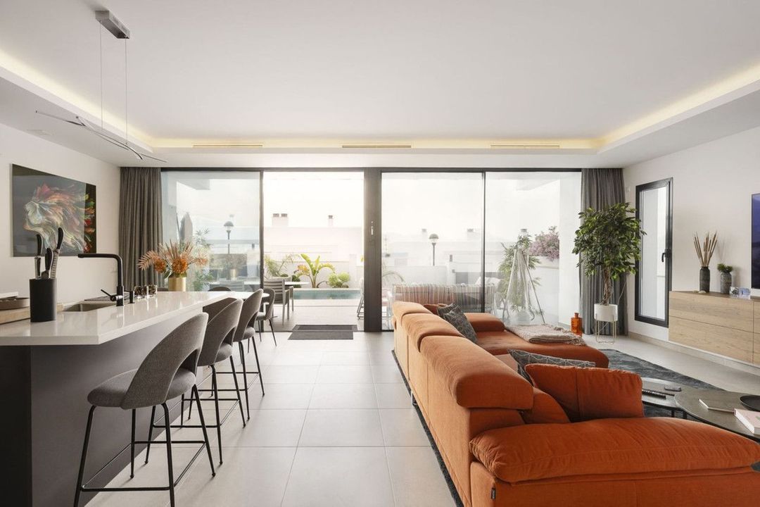 Open leefruimte – Een lichte, open woonkamer met een strakke designkeuken voorzien van hoogwaardige inbouwapparatuur. Perfect voor gezinnen en gasten.