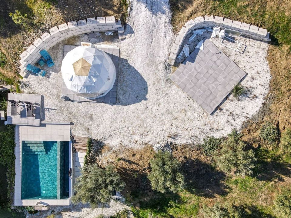 Beside the pool, there is currently a pod with a flat area available, offering potential for the addition of a second pod or separate accommodation.