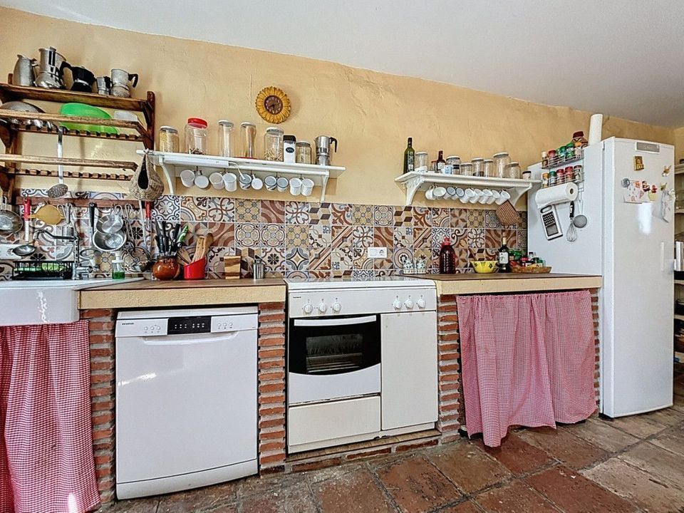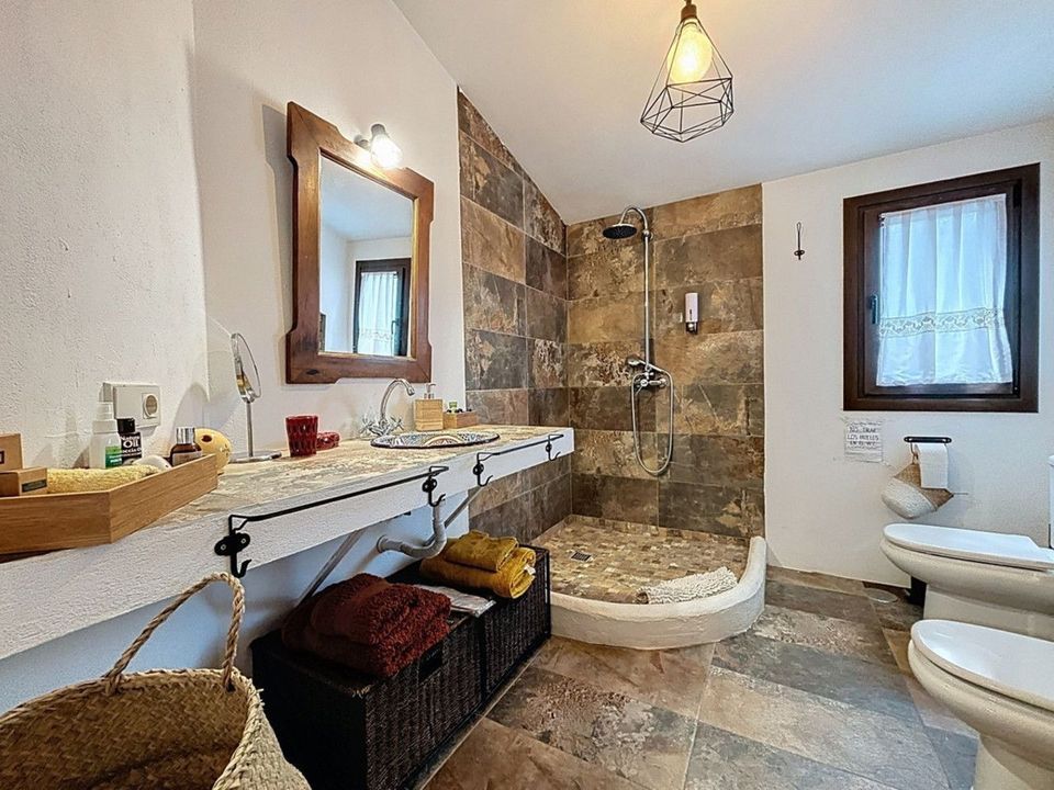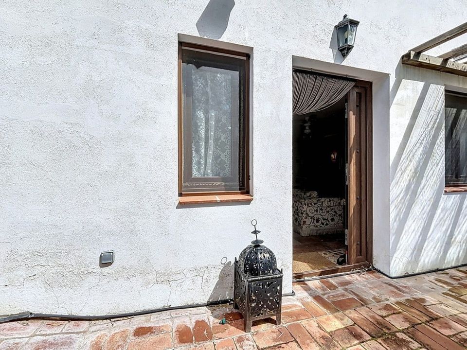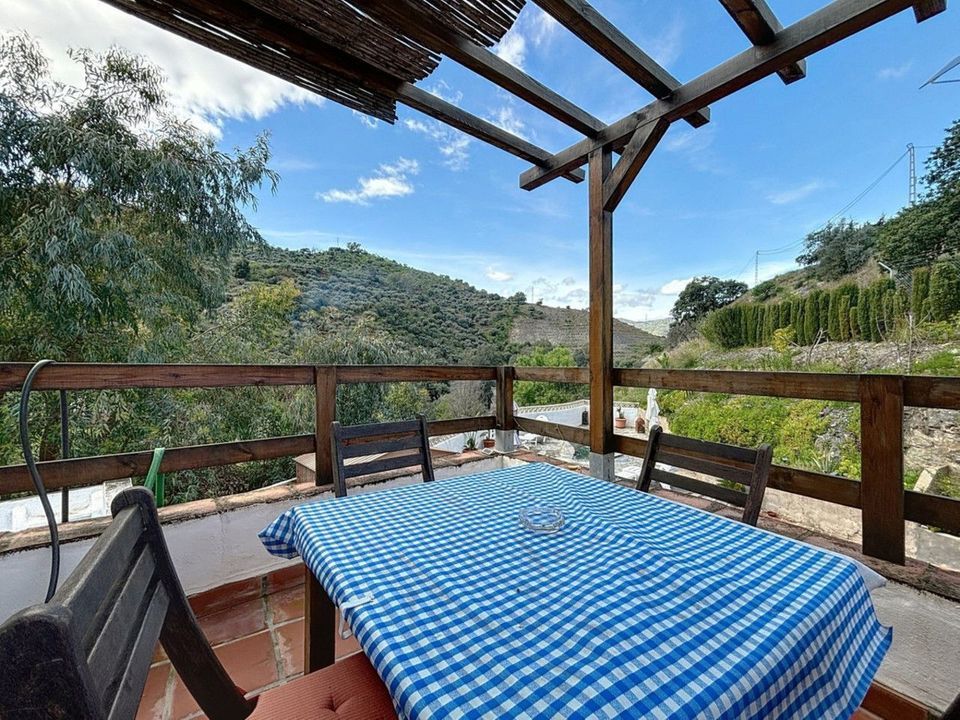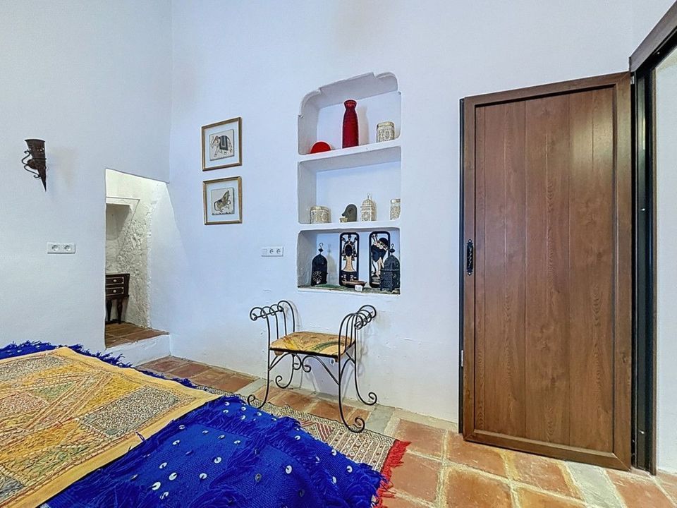 Ontdek het charme van het buitenleven met deze ruime landelijke woning in de heuvels van Comares. Deze bijzondere woning is één huis met twee aparte woonunits ideaal voor families, gasten of als verhuurinvestering. De hoofdwoonruimte op de begane grond beschikt over vijf slaapkamers, twee badkamers, een keuken en een ruime woon-/eetkamer. Dankzij de grote ramen baadt het hele huis in natuurlijk licht en voelt het warm en gastvrij aan. Op de bovenverdieping bevindt zich een loft-appartement met eigen keuken, woon-/eetruimte, badkamer en één slaapkamer perfect voor gasten of als verhuur. De begane grond heeft twee aparte ingangen, waardoor het eenvoudig is om deze op te splitsen in twee appartementen: één met twee slaapkamers en één met drie slaapkamers ideaal voor dubbele bewoning of als opbrengsteigendom. Buiten vind je een privézwembad, barbecueplek, overdekt terras en volop ruimte om te ontspannen en te genieten van het uitzicht op de bergen. Verder zijn er een berging, wasruimte, airconditioning en een open haard voor comfort in elk seizoen. Of je nu op zoek bent naar een gezinswoning, een rustige vakantieplek of een investering in het platteland van Andalusië, deze woning biedt eindeloze mogelijkheden. Neem vandaag nog contact met ons op en ervaar zelf de schoonheid van Comares. We zijn blij dat we dit droomhuis binnenkort aan u mogen voorstellen, hetzij persoonlijk, hetzij via een virtuele bezichtiging. Want deze wereld is uniek - net als onze Axarquía. In Andalusië. Aan de Costa del Sol. Hier, aan de zonnige kant van het leven...