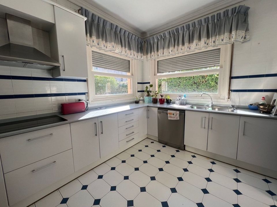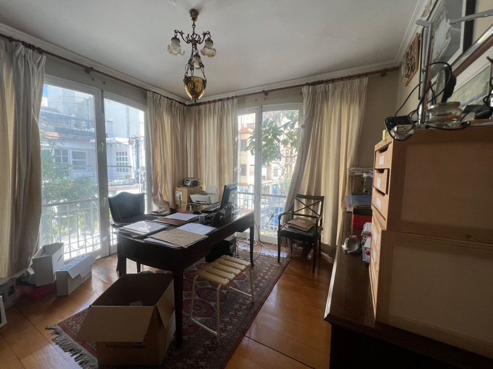 Dit grote huis van 352 m2 heeft op de begane grond een grote eetkamer met uitzicht op de straat, een ruime woonkamer met directe toegang tot het terras, een keuken aangepast aan de grootte van het pand met toegang tot de patio, een grote kamer met badkamer en toilet. Op de tweede verdieping bevinden zich vijf slaapkamers en drie badkamers. De hoofdkamer heeft een badkamer en een groot balkon. Tevens is er een studeerkamer met uitzicht op de straat, die ook als slaapkamer gebruikt kan worden. En tot slot is er op de derde verdieping een kamer die als slaapkamer had kunnen worden gebruikt, maar tot nu toe als berging is gebruikt.