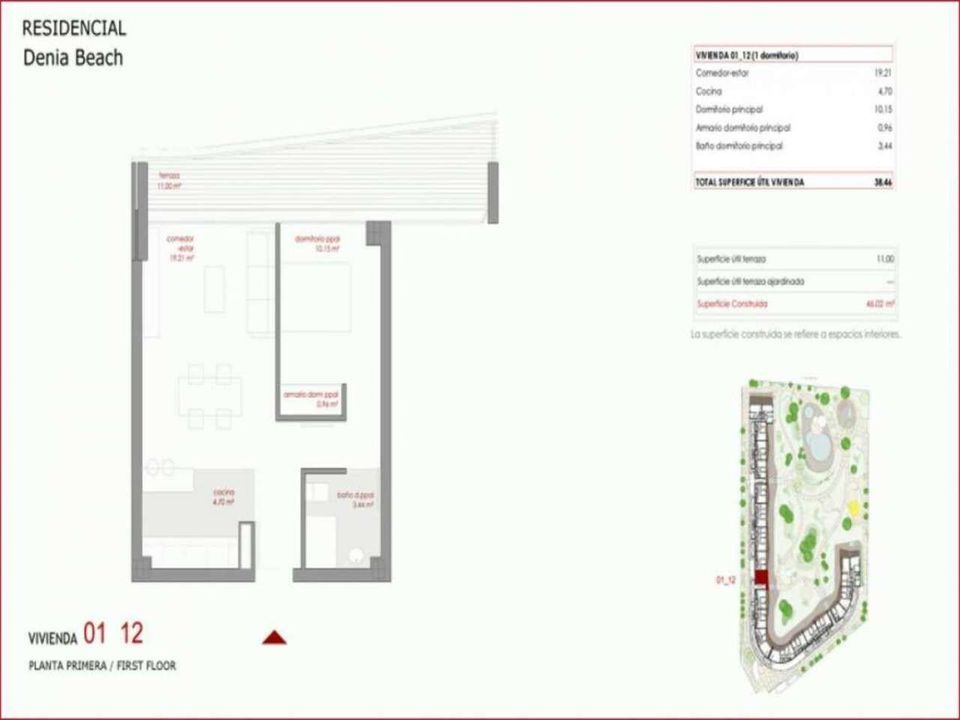 Recently finished, this Residential complex of 79 apartments in Denia constructed on a stunning front line location Modern style apartments have open plan living dining with a new fully equipped kitchen with Oven, ceramic gas hob and extractor fan.All bedrooms have fitted wardrobes.overlooking the terrace with beautiful views to the sea and mountains. The bathrooms have a shower, screen, vanity mirror, halogen light etc.The complex will be fenced and gated offering an access control system.Each apartment has its private parking place and storage in the underground parking. Lifts to all floors.There will be special areas to chill and socialise.The area is walking distance to various restaurants and Bars and 9km to Denia centre and the large Port area.Various apartments are available with 1, 2 and 3 bedrooms. Plans and show flat available. 1 bedroom Apartments start from 174,700 euros and two bedrooms from 223.500 euros.