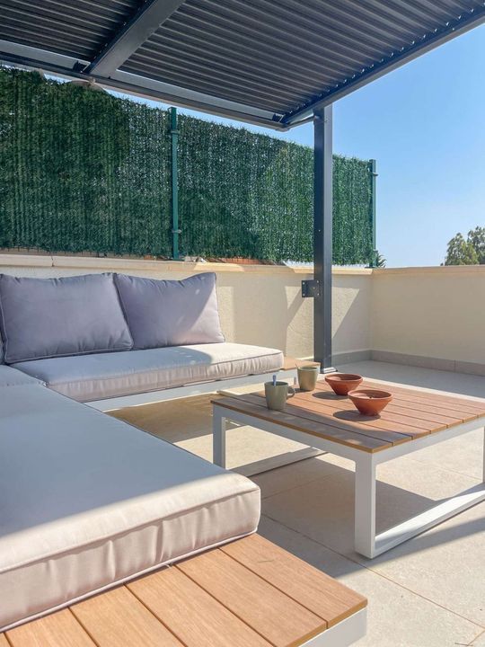 Prachtig penthouse in een wooncomplex in Denia, op loopafstand van de haven van Denia en het centrum met al zijn voorzieningen. Dit penthouse heeft een oppervlakte van 87,82 m² plus een privé dakterras van 23 m². Het bestaat uit twee slaapkamers, inbouwkasten in alle kamers, een open keuken met alle apparatuur (koelkast, oven, inductiekookplaat, vaatwasser), een volledig afgewerkte badkamer (douche en glazen scherm) en een privéterras grenzend aan de woonkamer. Het privé solarium is voorzien van een zomerkeuken, patio en douche, uitzicht op de gemeenschappelijke ruimtes (tuin en zwembad), het natuurpark Montgó, het kasteel van Denia en een parkeerplaats buiten. De gemeenschappelijke ruimtes bestaan uit zwembaden (voor volwassenen en kinderen) en tuinen, waardoor een prachtige omgeving ontstaat waar u kunt genieten van comfort en ontspanning. Alle woningen liggen aan de buitenkant, de penthouses hebben een privé solarium en de begane grond heeft een eigen tuin. De overige woningen hebben grote terrassen die dankzij de grote ramen geïntegreerd zijn in de lichte woonkamer. Deze moderne woningen bieden u de mogelijkheid om het hele jaar door in een rustige woonwijk te wonen, met alle comfort. Ideaal voor vakanties en weekenden. 2 slaapkamers, 1 badkamer, keuken, ruime woonkamer, balkon (10m2) en groot dakterras (23m2) - Veiligheidsdeur. - Omheind terrein - Aluminium ramen met dubbele beglazing - Tegelwerk van topkwaliteit - Warm water door zonne-energie. - Keuken uitgerust met keramische kookplaat, koelkast, oven en magnetron. - Airconditioning in het hele huis met warmtepomp. Aparte ruimte met wasmachine-aansluiting. Warmwatervoorziening via boiler met zonnepaneel. Energielabel: Gemeenschapskosten € 70,00 per maand. Dit houdt in: Opstalverzekering. Onderhoud gemeenschappelijk zwembad. Onderhoud gemeenschappelijke tuin.
