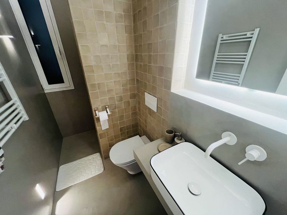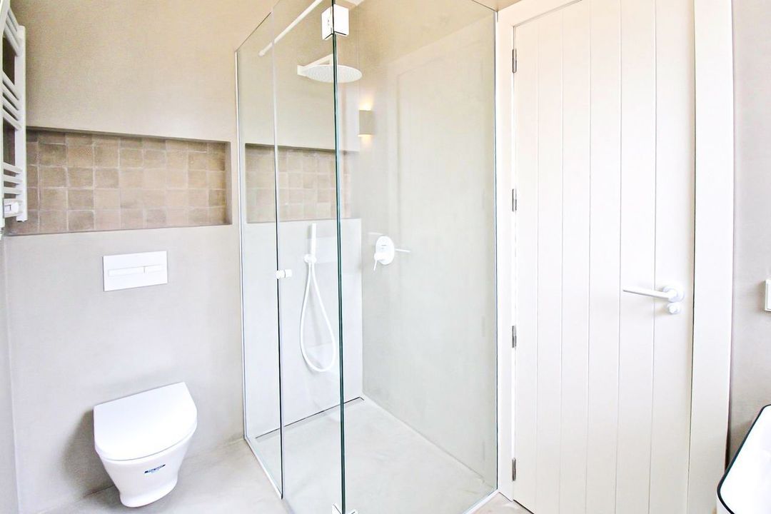 Luxe afwerkingen: Italiaanse Marazzi vloeren, microcementbadkamers, porseleinen antislipvloeren van Mirage, Roca sanitair, Tres kranen, textielmelamine kasten