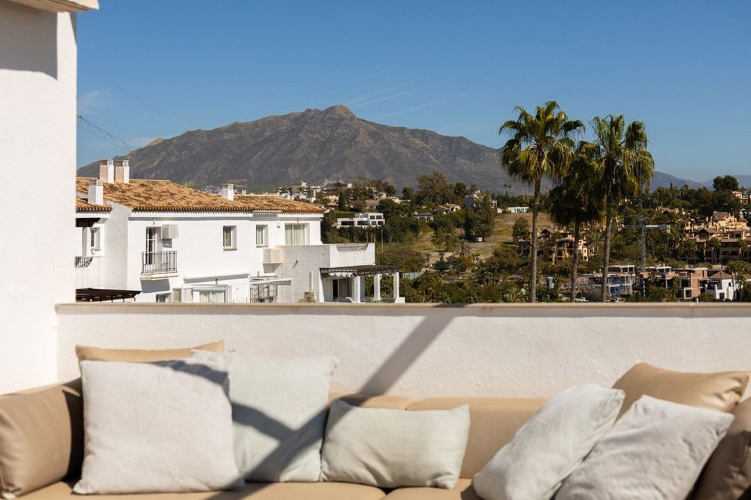This beautifully renovated corner two-bedroom penthouse offers bright, modern living in the desirable area of El Paraíso and is one of the closest properties to the sea within the community. The open-plan kitchen, dining, and living area is filled with natural light and opens onto both north- and south-facing terraces, each enjoying open, unobstructed views.