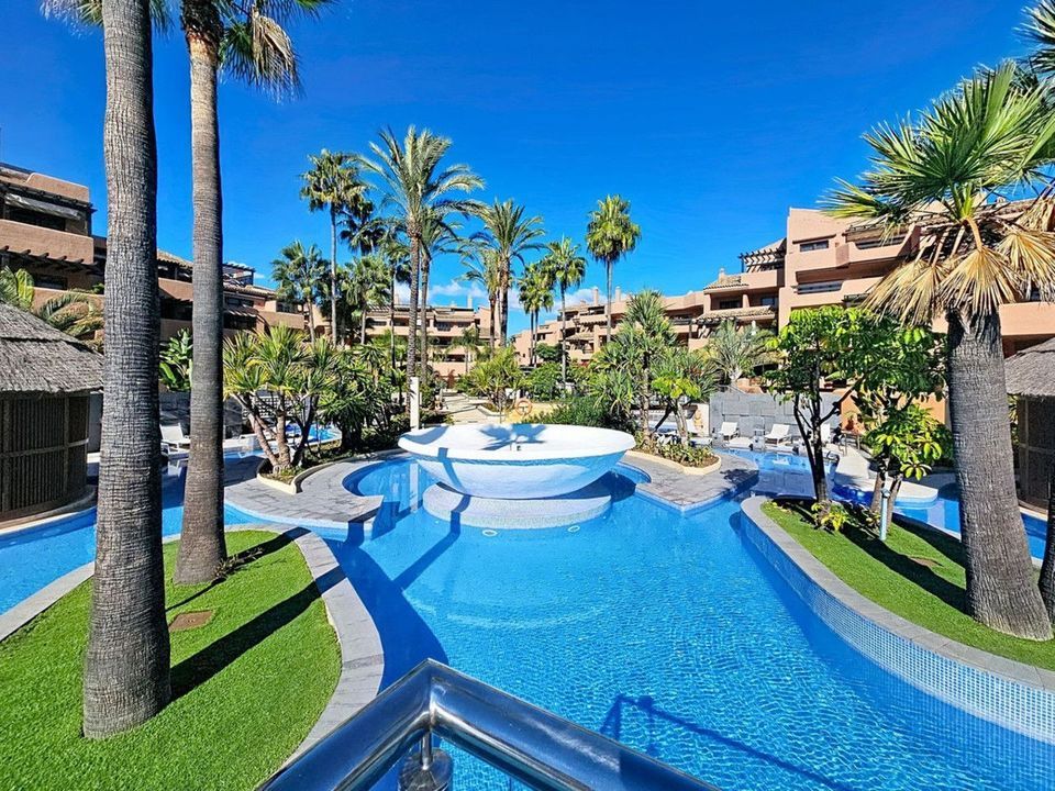 This beautiful and comfortable 3-bedroom, 2-bathroom property is located in one of Estepona's most exclusive frontline beach developments. The spacious living/dining area with open plan klitchen and the main bedroom both offer direct access to the terrace, which connects to the private garden, creating a seamless indoor–outdoor living experience. The purchase price includes a private underground parking space and a storage room.