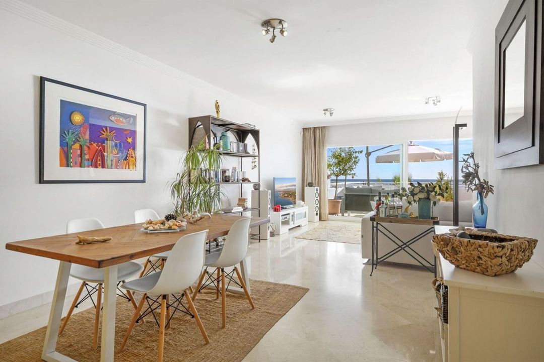Dit uitzonderlijke appartement, gelegen in de zeer gewilde strandwijk Buenas Noches in Estepona, biedt directe toegang tot de Middellandse Zee en een adembenemend, ononderbroken panoramisch uitzicht op zee.