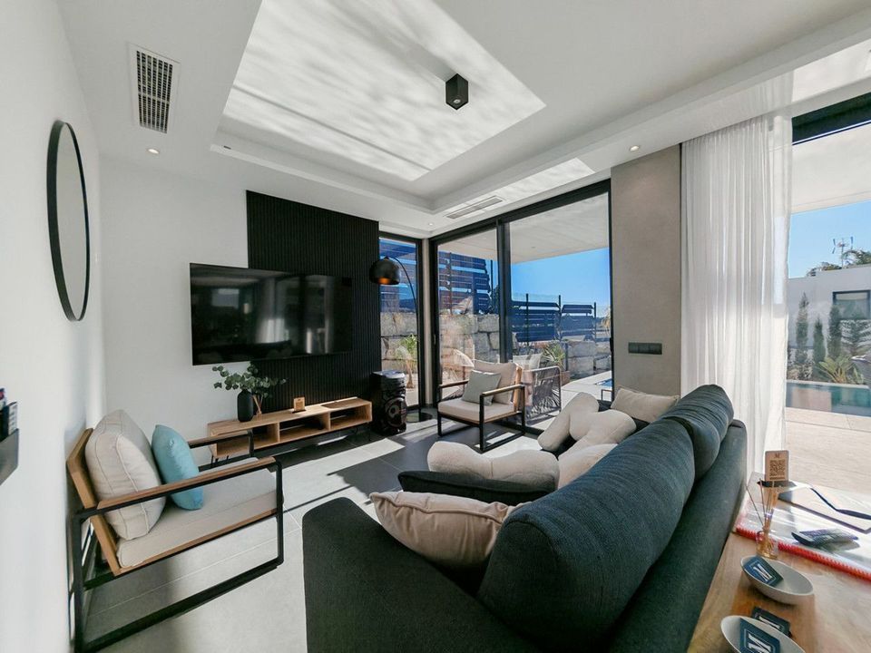 Villa te koop in Valle Romano, Estepona met 4 slaapkamers, 3 badkamers, 1 badkamer, 1 toilet en met oriëntatie west, met prive zwembad, privé garage (1 parkeerplaatsen) en privé tuin. Over eigendom afmetingen heeft 316 m² bebouwd en 495 m² plot. Over de volgende faciliteiten dicht bij voorzieningen, vervoer dichtbij, airconditioning, compleet gemeubileerd, inbouwkeuken, kelder, gasten slaapkamer, alarm, nieuw, gastentoilet, complete keuken, woonkamer, uitzicht over land, uitzicht op de bergen, golf uitzicht, verwarmd zwembad, automatisch irrigatiesysteem, domoticasysteem, wasruimte, internet - wi-fi, overdekt terras, inbouwkasten, uitzicht op de tuin, uitzicht op het zwembad, vloerverwarming (badkamer), bij de zee/het strand, dicht bij golfclub, niet overdekt terras, glazen deuren, open keuken, dicht bij winkels, dicht bij de stad, dicht bij de haven, dicht bij scholen en bewakingscamera's.