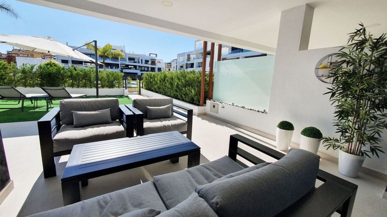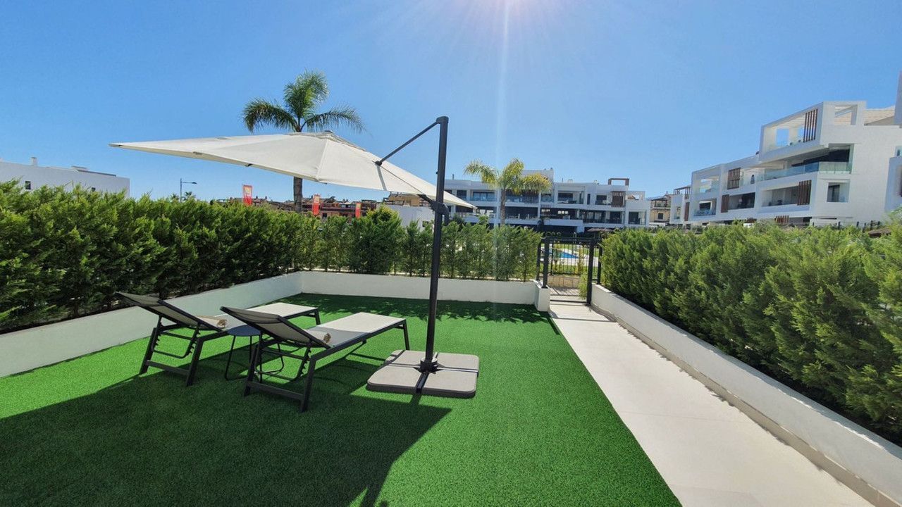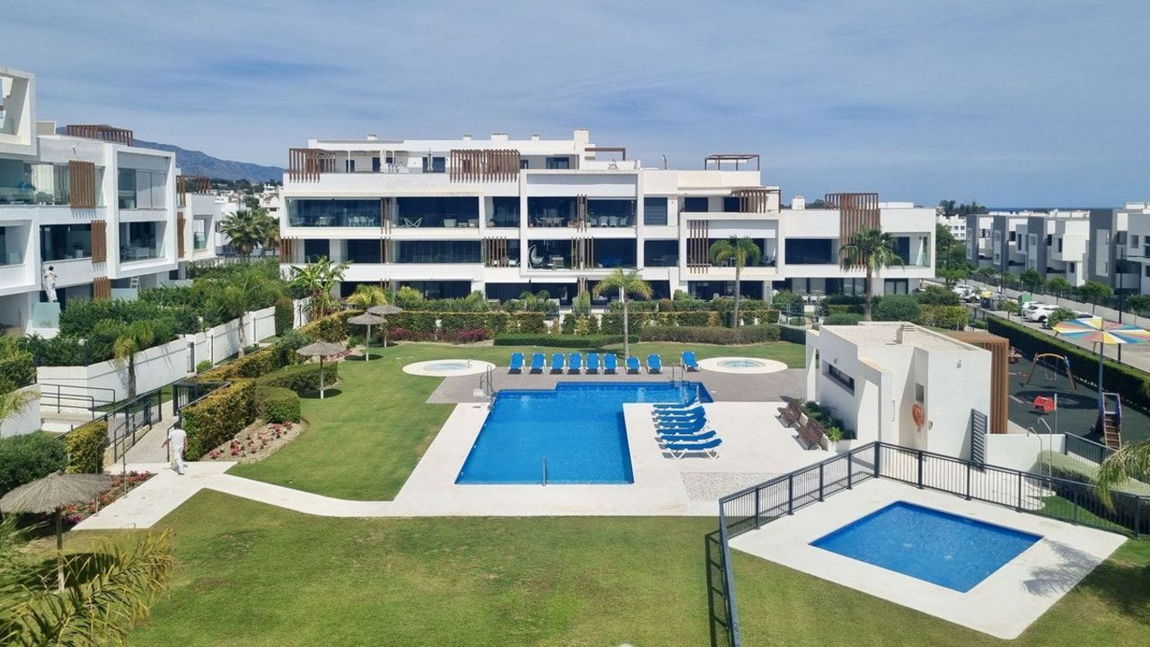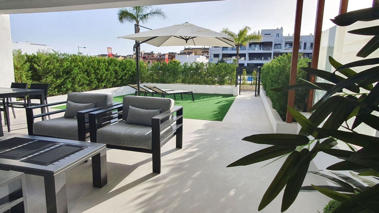 This stunning ground-floor apartment in Los Miradores del Sol Phase I perfectly combines contemporary luxury with Mediterranean indoor-outdoor living on Estepona's exclusive New Golden Mile. Offering 92 m² of elegant interior space and an impressive 84 m² of private terraces and gardens, it's ideally located just a short walk from the beach, shops, and restaurants.