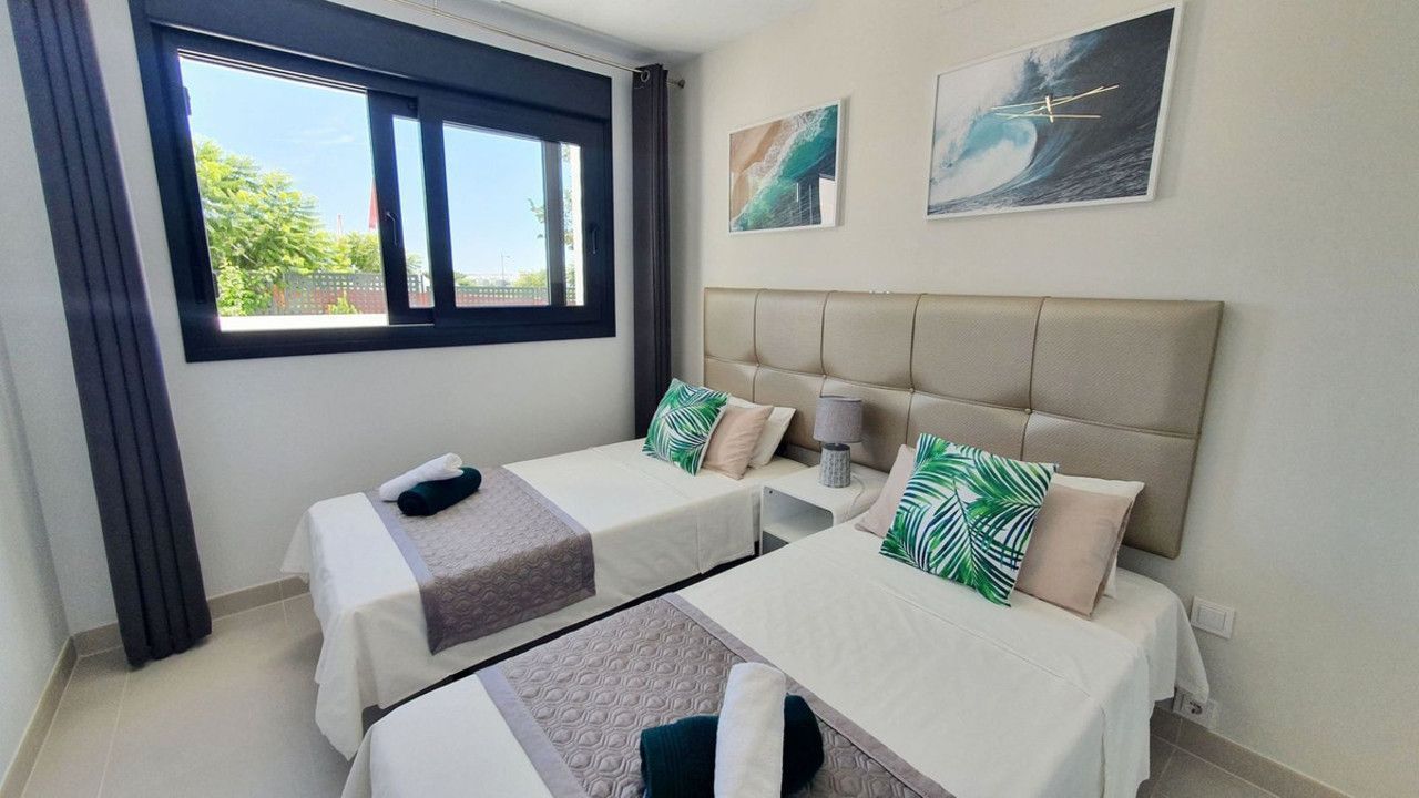 The garden connects directly to the tranquil communal areas featuring beautifully landscaped Mediterranean gardens, swimming pools, jacuzzis, and a children's play area.