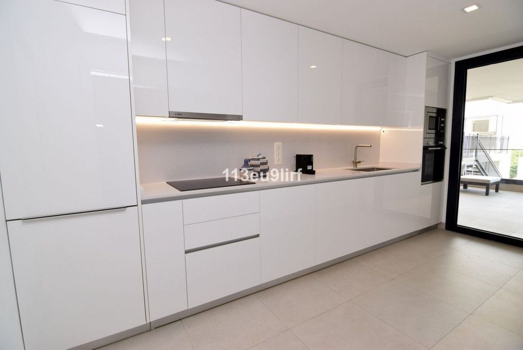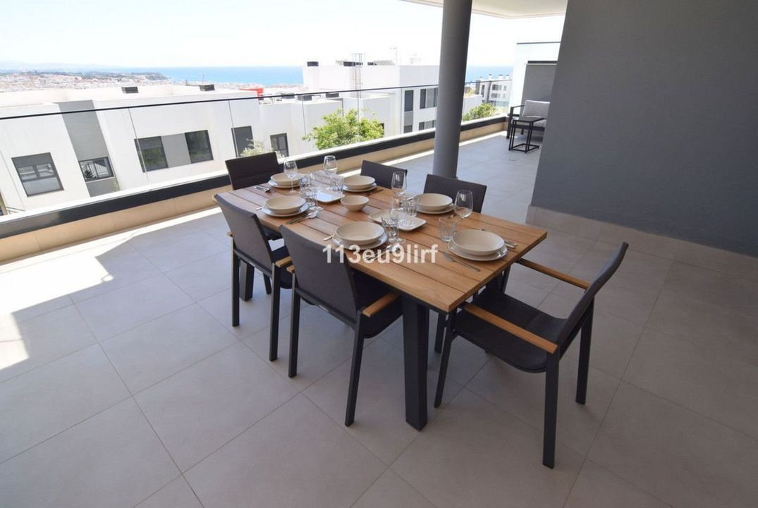 Gelegen net buiten het centrum van Estepona, biedt dit ruime luxe appartement rust en kalmte maar is toch dicht bij het strand, de haven en het stadscentrum. Het bestaat uit een grote woon/eetkamer, een volledig uitgeruste keuken met aangrenzende bijkeuken, de en suite hoofdslaapkamer en nog twee slaapkamers die een doucheruimte delen. Daarnaast is er een overdekt terras van 40 m2 aan de voorzijde met uitzicht op zee en een patio van 16 m2 aan de achterzijde. Ondergrondse parkeergelegenheid voor één auto en berging. Het complex met videobewaking is zeer goed onderhouden, met tropische tuinen en een mooi zwembad. Verwarmd binnenzwembad en fitnessruimte (400 meter van het appartement). Airconditioning warm & koud, high speed internet.