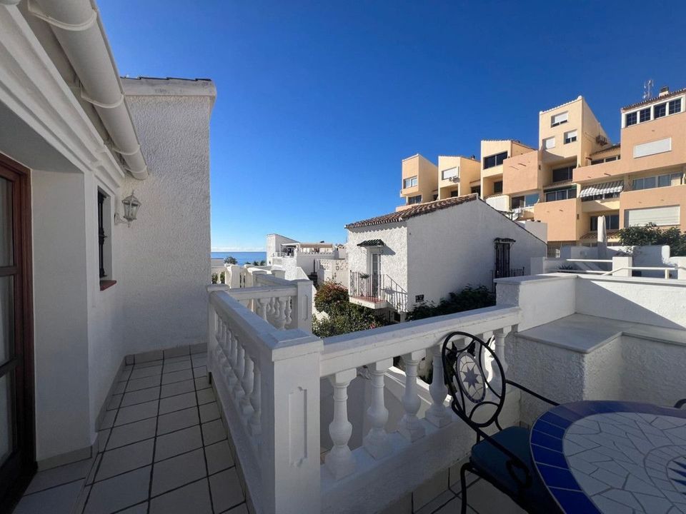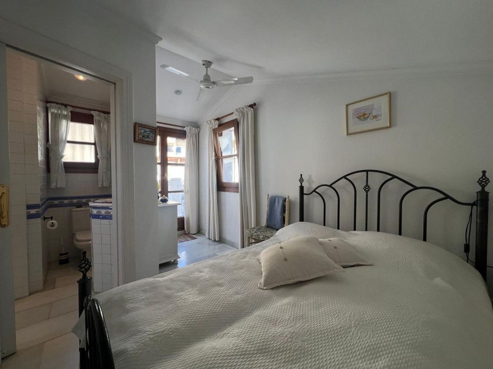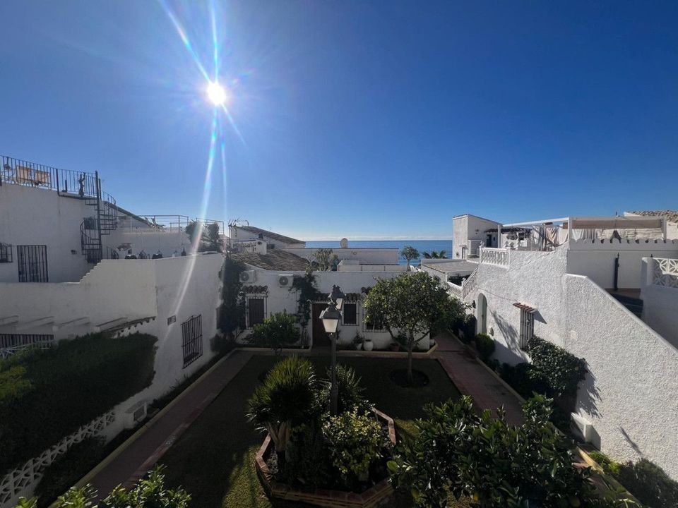 Eerstelijns strandcomplex in Estepona, New Golden Mile, tussen Cancelada en Selwo, vlak bij Las Dunas. Prachtige volledig gerenoveerde halfvrijstaande hoekwoning, gelegen in een complex aan het strand met een unieke charme, dat doet denken aan een authentiek vissersdorp vol karakter en traditie. De ligging is uitzonderlijk: op slechts 50 meter van de boulevard en het strand, op 5 minuten van het centrum van Estepona en op 10 minuten van Puerto Banús. Een rustige omgeving waar het geluid van de golven het dagelijks leven begeleidt. Op slechts 50 meter bevindt zich bovendien een uitstekend strandrestaurant. De woning werd volledig gerenoveerd in 2003 in een elegante Spaans-Scandinavische stijl. De terrassen zijn uitstekend geïsoleerd en voorzien van nieuwe ramen met dubbele beglazing in Braziliaans hardhout. Centrale gasverwarming met gashaard. De woning beschikt over 3 slaapkamers en 3 badkamers, waaronder één slaapkamer en één badkamer op de begane grond, een grote volledig ingerichte keuken, een aangename woonkamer en een prachtige patio, ideaal om gasten te ontvangen. Daarnaast zijn er vier bergingen. Op de bovenverdieping bevinden zich twee tweepersoonsslaapkamers met en-suite badkamers, evenals een schitterend dakterras dat veel privacy biedt en adembenemende panoramische zeezichten. Een recent aangelegde promenade en een nabijgelegen bushalte zorgen voor gemakkelijke verplaatsingen, waardoor een auto niet noodzakelijk is.