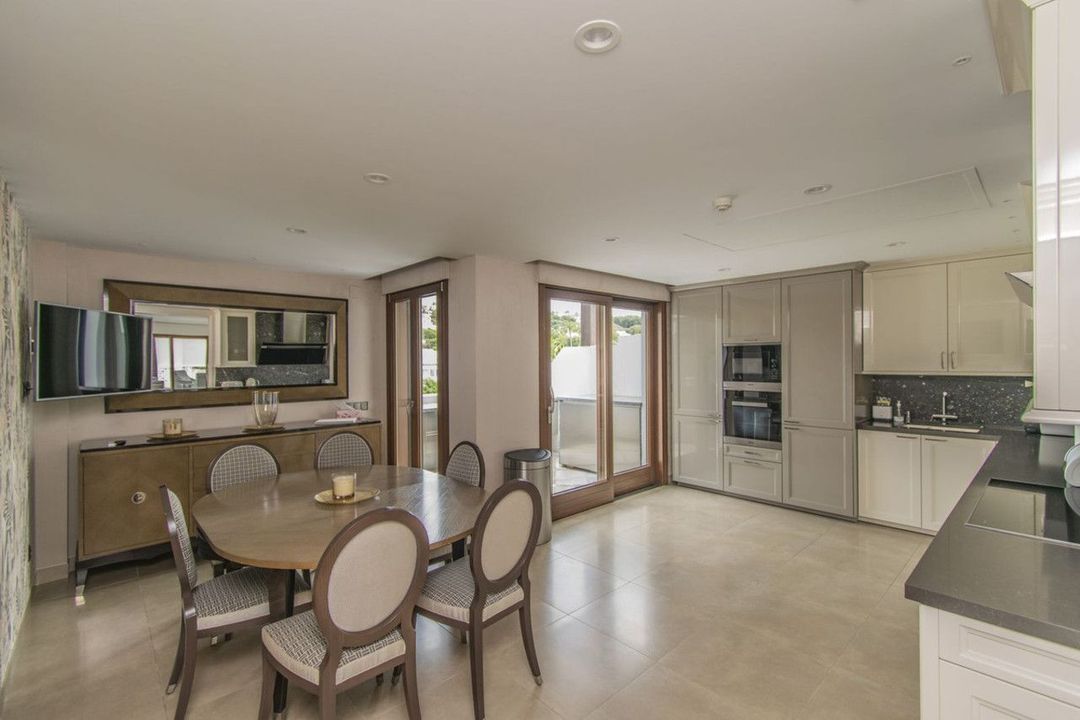 This enormous penthouse, spread over two floors plus a solarium, offers a total of five bedrooms, five bathrooms plus a toilet, a large living room, a kitchen with a dining area, and enormous terraces with stunning sea views.