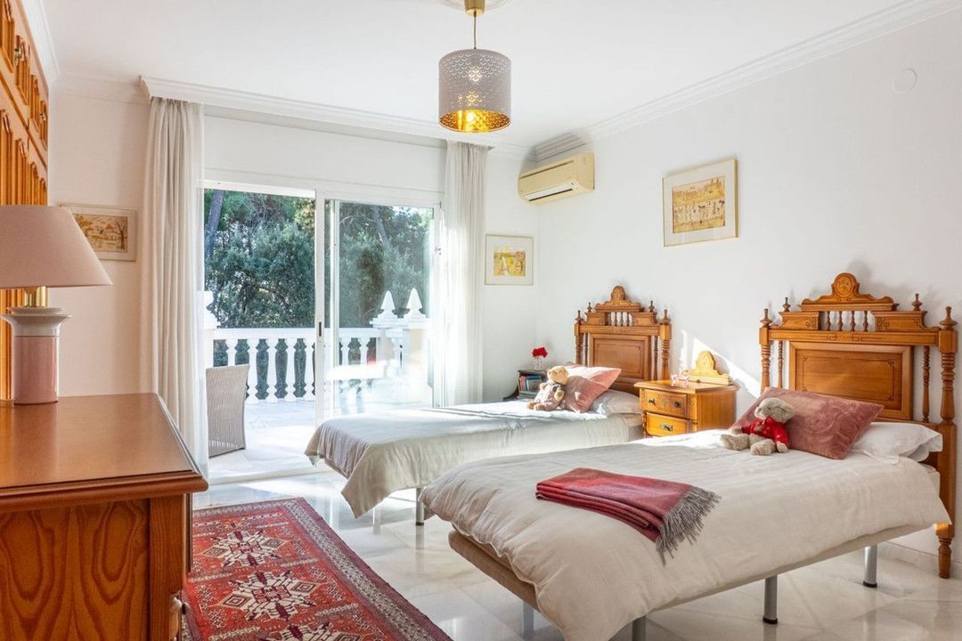 The upper floor hosts the remaining four bedrooms, all exceptionally spacious, each with its own en-suite bathroom and direct access to large terraces that benefit from the south-facing orientation and pleasant open views. The property stands out for its charming traditional architecture, high ceilings, excellent condition and abundant natural light in every corner. This is a unique home, perfect as a family residence or as an investment opportunity in one of the most sought-after locations on the Costa del Sol.
