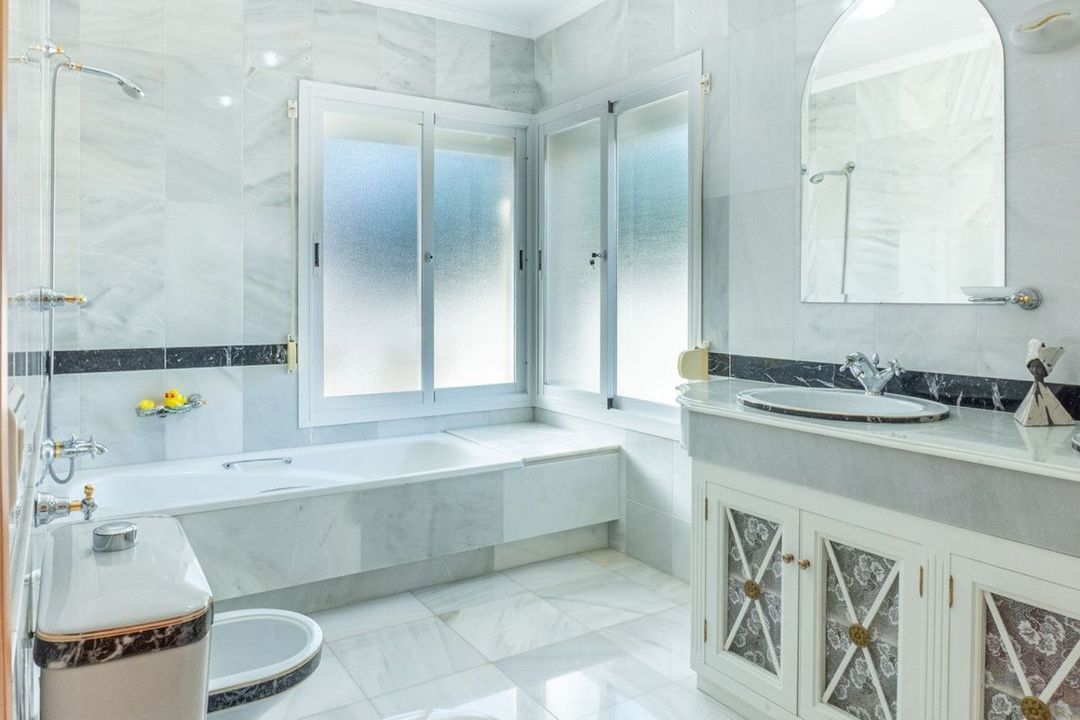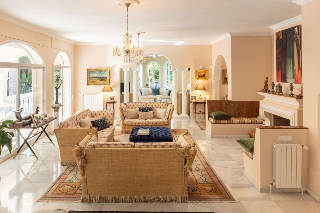 This magnificent traditional-style villa is located in the exclusive New Golden Mile, within the prestigious El Presidente community, just 50 metres from the beach and its newly built seaside promenade. The location is exceptional, surrounded by all kinds of amenities and only five minutes' drive from Puerto Banús and ten minutes from both Marbella and Estepona. The property sits on a 1,275 m² plot and offers 539 m² built, including 461 m² of internal living space and 80 m² of terraces, all facing south to ensure exceptional brightness throughout the day.