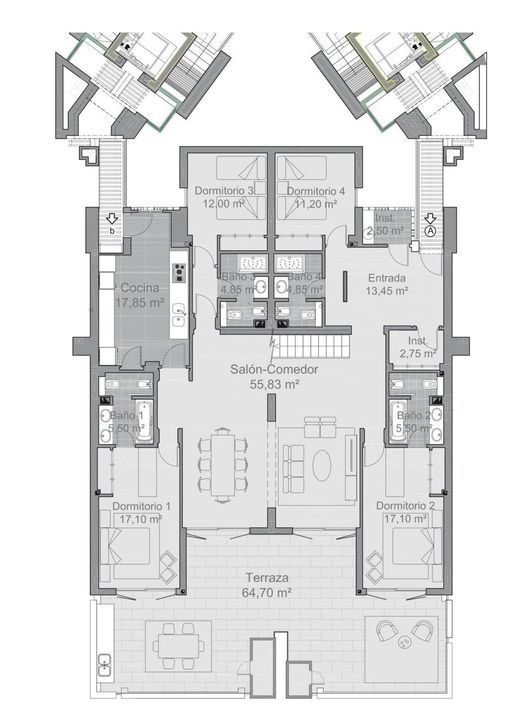 Het project omvat een verzameling moderne, elegant ontworpen appartementen en penthouses, gekenmerkt door hun ruime indeling, hoogwaardige afwerking en uitgestrekte terrassen. Elke unit is zorgvuldig ontworpen om het natuurlijke licht te maximaliseren en een naadloze woonervaring binnen en buiten te bieden.