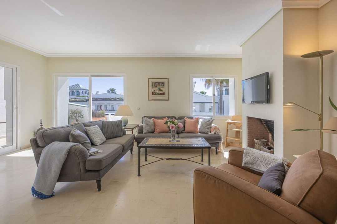 Dominion Beach is a well-established residential complex known for its distinctive Andalusian architecture and lush subtropical gardens, creating a serene and tropical environment. The complex boasts several top-notch amenities, including three outdoor swimming pools, a children's pool, and a wellness centre with massage services. The communal beach terrace offers direct access to the beach, perfect for enjoying the Mediterranean climate. In contrast, the summer beach bar and full-service restaurant provide a relaxed dining experience by the sea. The gated community features 24-hour security for peace of mind, a gymnasium, a social area, and an administration office. For water sports enthusiasts, there is a private slipway for easy access to jet skis, waterskiing, and windsurfing. The area is well-connected to local shops, restaurants, and playgrounds, making it an ideal choice for families and professionals. With its tranquil surroundings, superb amenities, and prime location, this duplex penthouse offers a perfect blend of luxury and convenience in Estepona.
