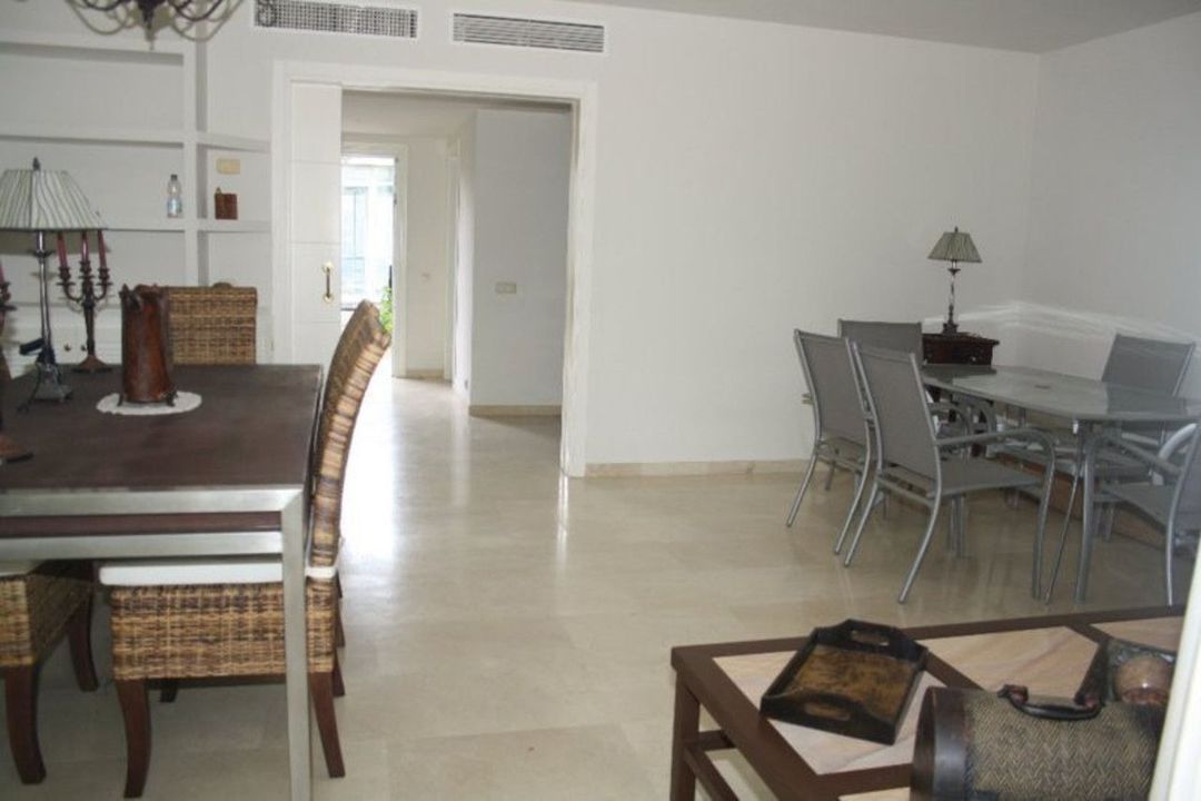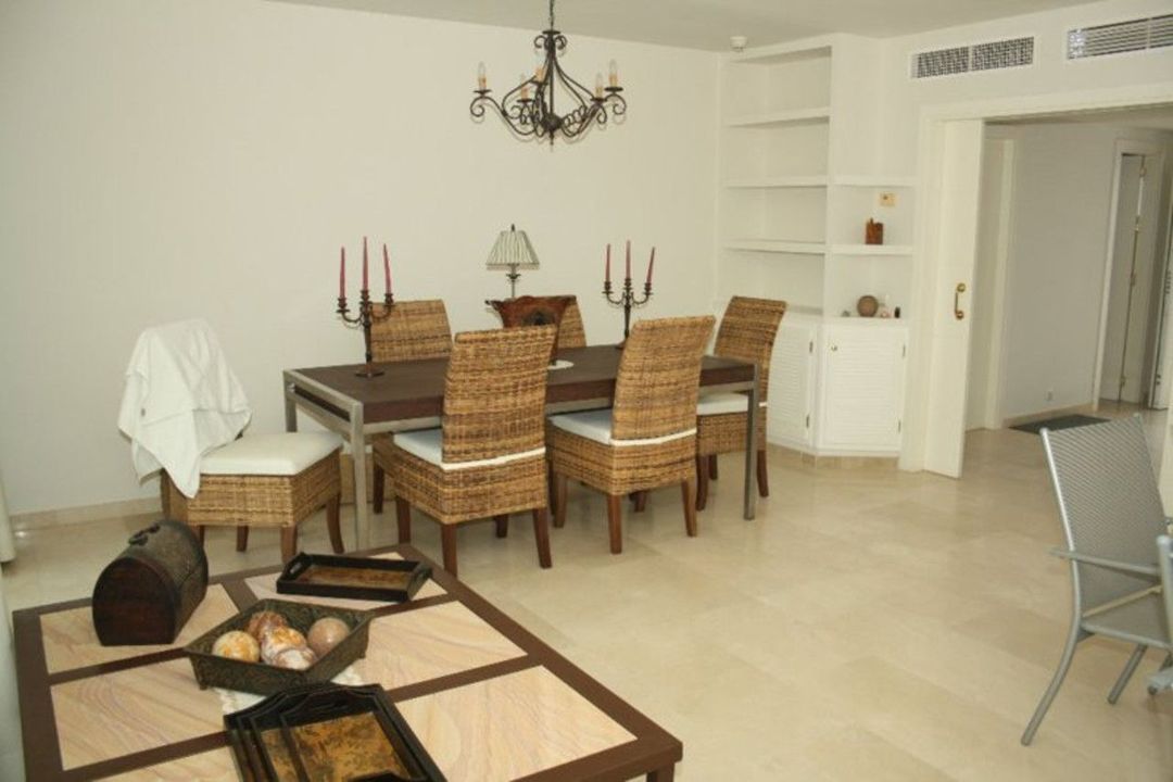 This south-facing apartment boasts unparalleled sea views and lush landscaped gardens. It features a spacious entrance hall, an elegant living and dining room with access to a magnificent terrace—perfect for relaxing and taking in the scenery. The fully equipped kitchen includes a breakfast area and a separate laundry room. There are three double bedrooms with fitted wardrobes and two bathrooms. Additionally, the property offers underground parking and a storage room, accessible by elevator or stairs. Ideally situated just a short stroll from restaurants and only a five-minute drive to a wide range of services, including bars, shops, supermarkets, upscale beach clubs, and prestigious golf courses. property Details: 3 Bedrooms, 2 Bathrooms Built Area: 170 m² Terrace: 50 m² 24-Hour Security