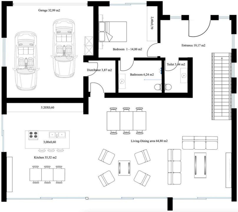 Consisting out of; ground floor, entrance hall, guest toilet, open plan living/dining area with a fully fitted kitchen, master bedroom with ensuite bathroom and dressing, covered carport for 3 car, 2 further bedrooms each with their ensuite bathroom.