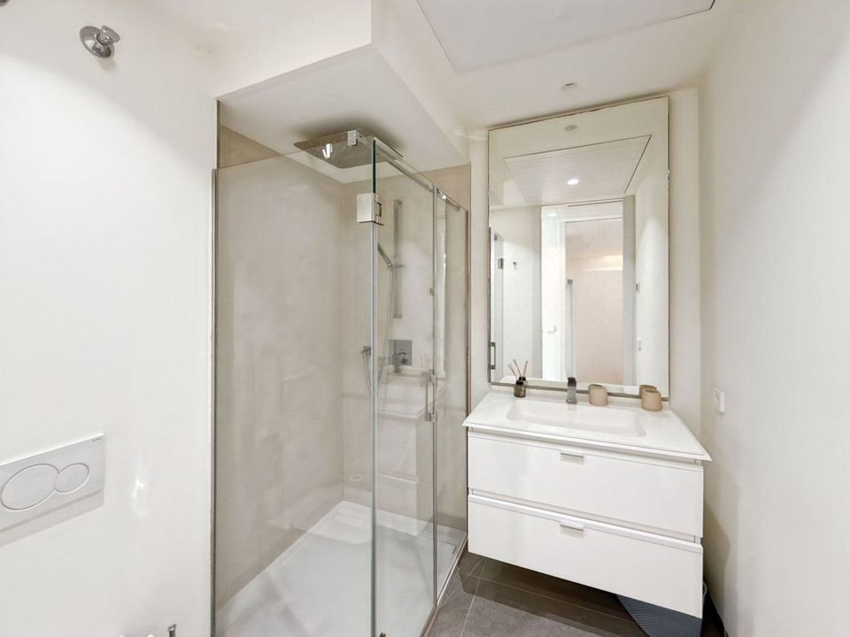 The glazed terrace of over 30 m² extends your living space outdoors — a place to breathe, relax, simply be. When night falls, the two bedrooms offer a quiet retreat. The master suite features an integrated safe, a detail that brings true peace of mind. Bathrooms are designed as spa-like spaces, complete with walk-in rain showers and elegant finishes.