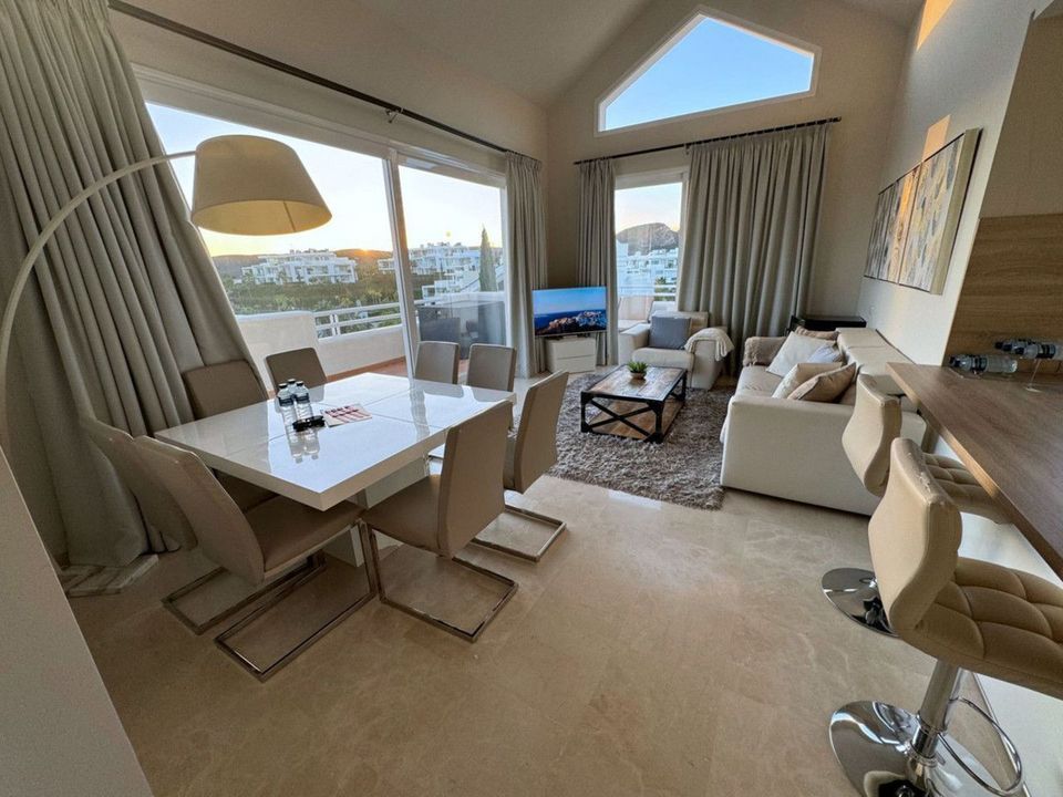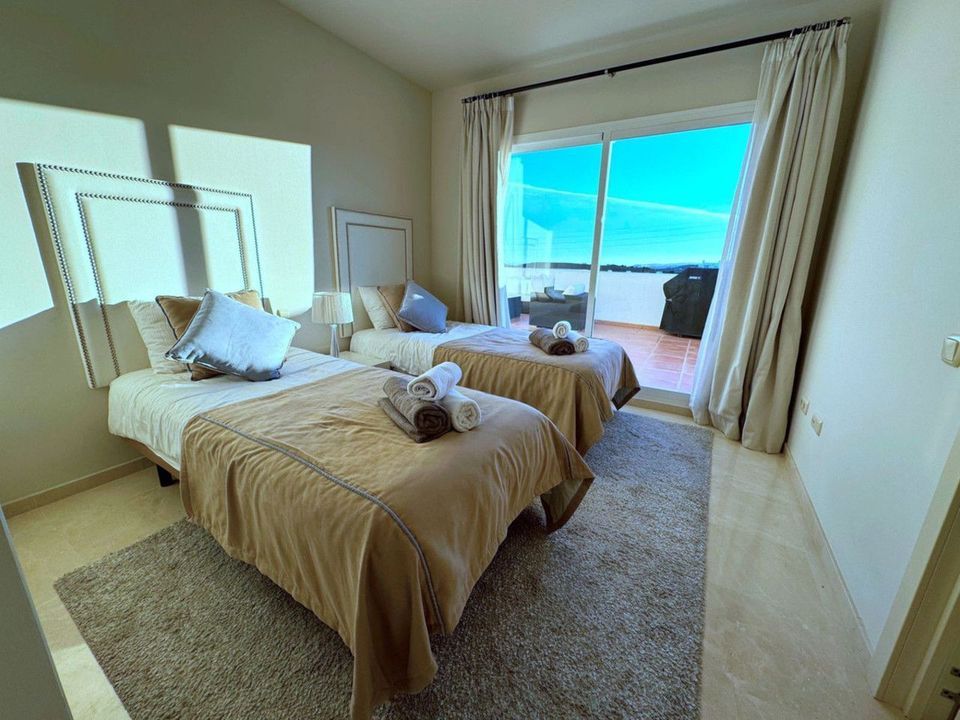 Accommodation for up to 4 guests is provided in a fully air-conditioned penthouse apartment with two double bedrooms, two bathrooms, a fully equipped kitchen with modern appliances, and a spacious living room. The 200 m² apartment includes a large terrace with views of the garden and surroundings.