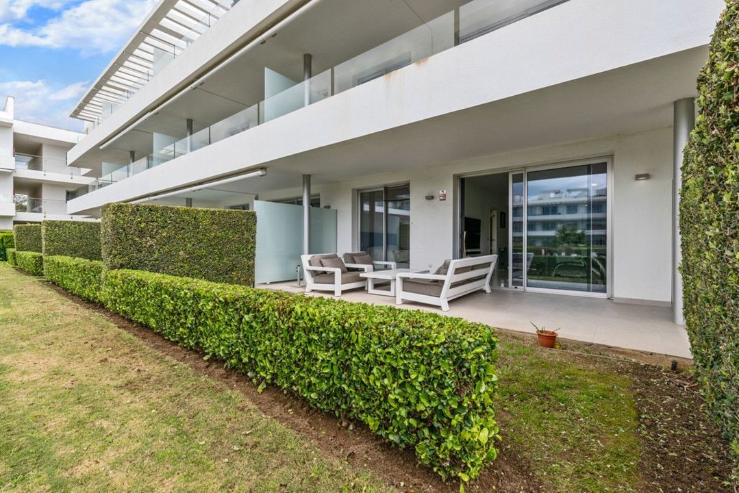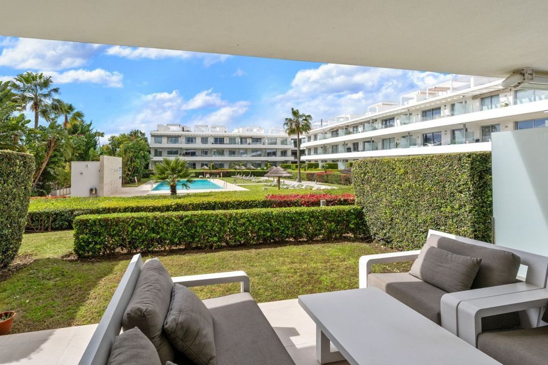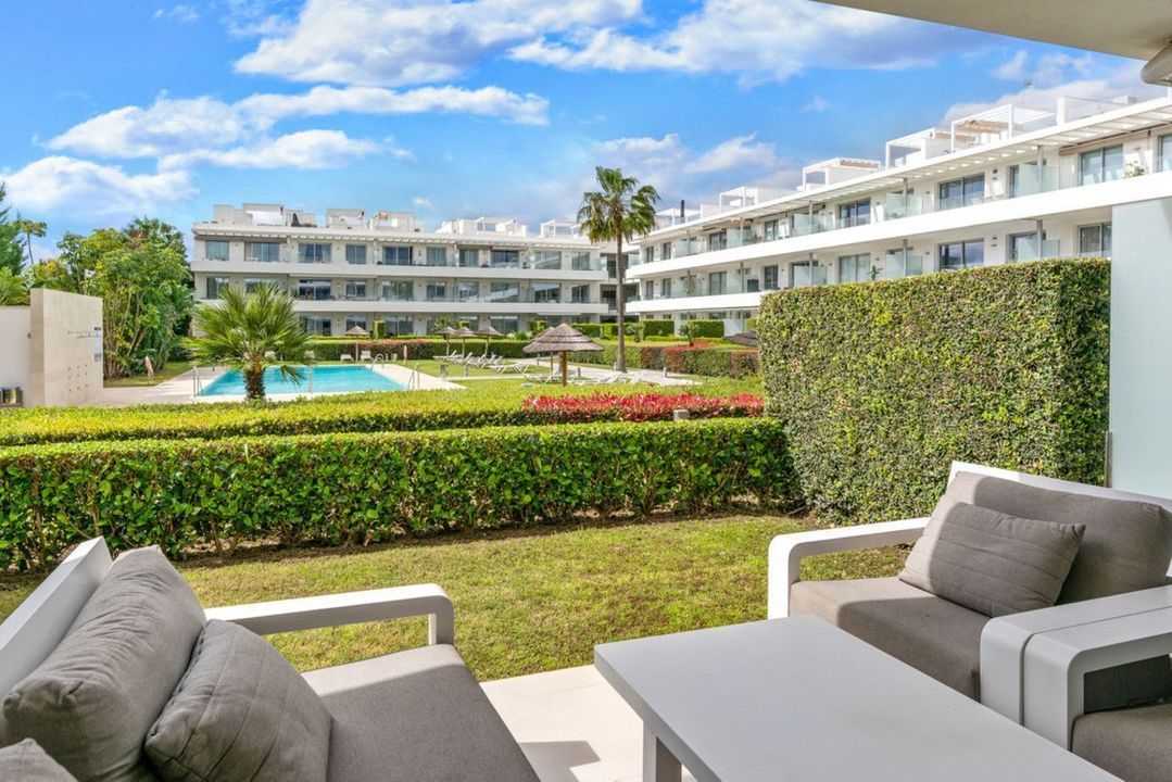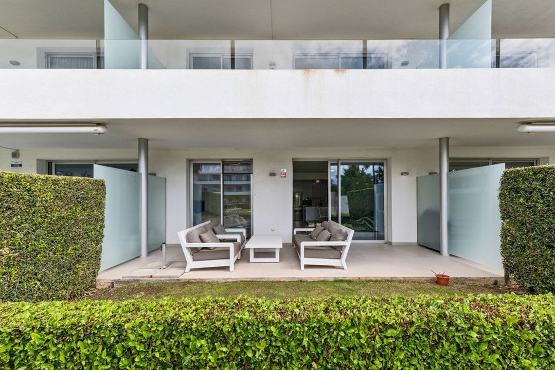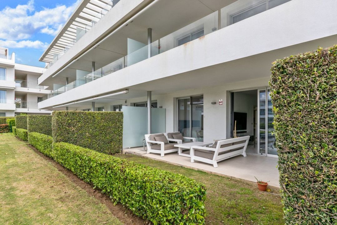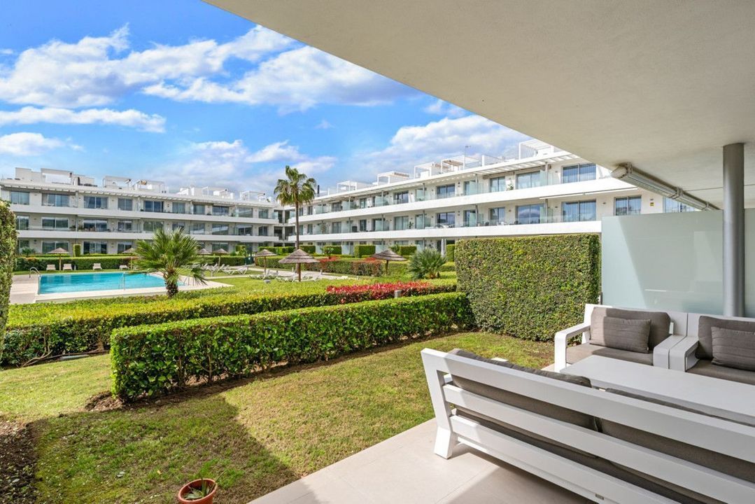 Modern appartement met twee slaapkamers op de begane grond, op het westen gelegen met middagzon en directe toegang tot de gemeenschappelijke tuinen en het zwembad.
