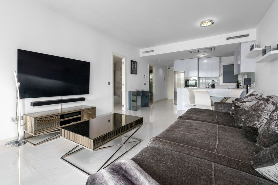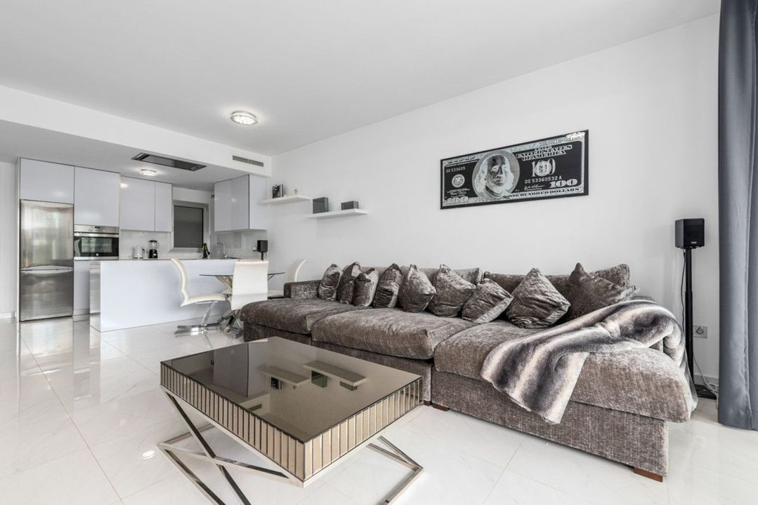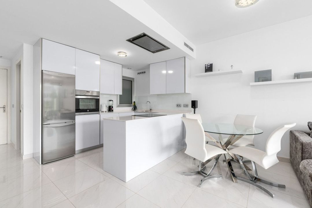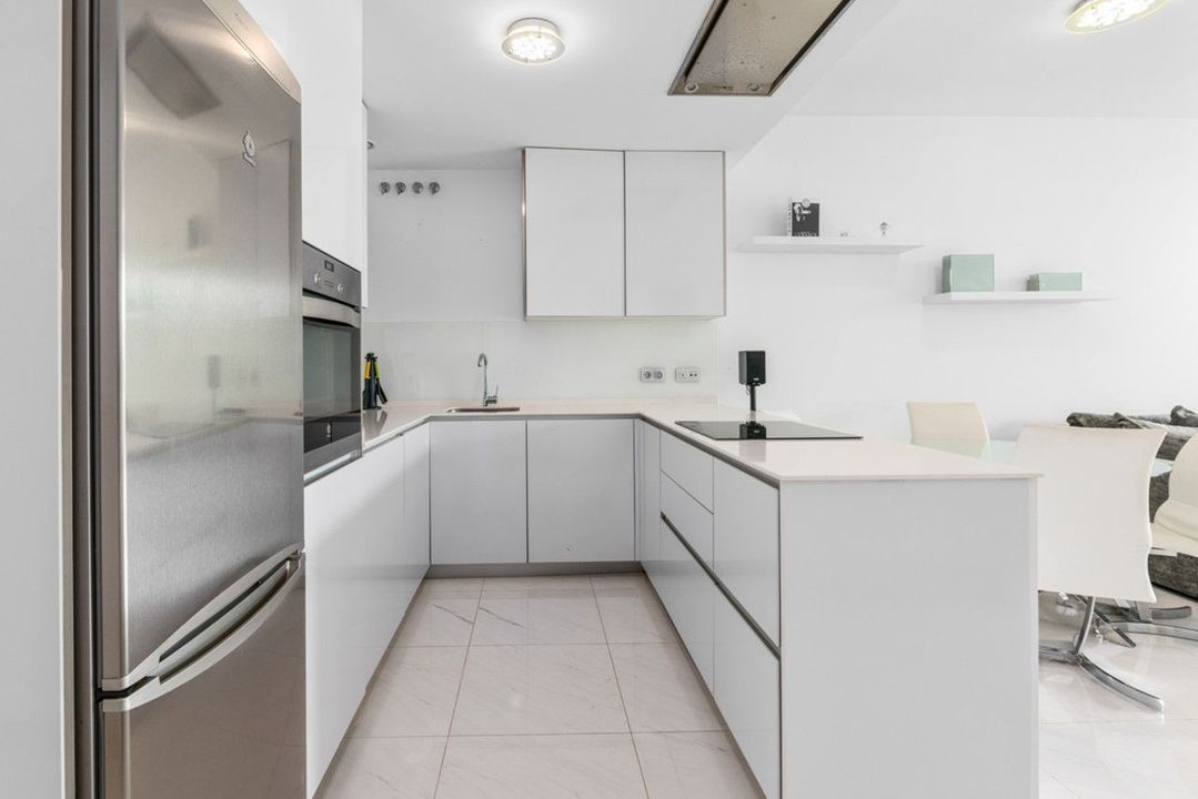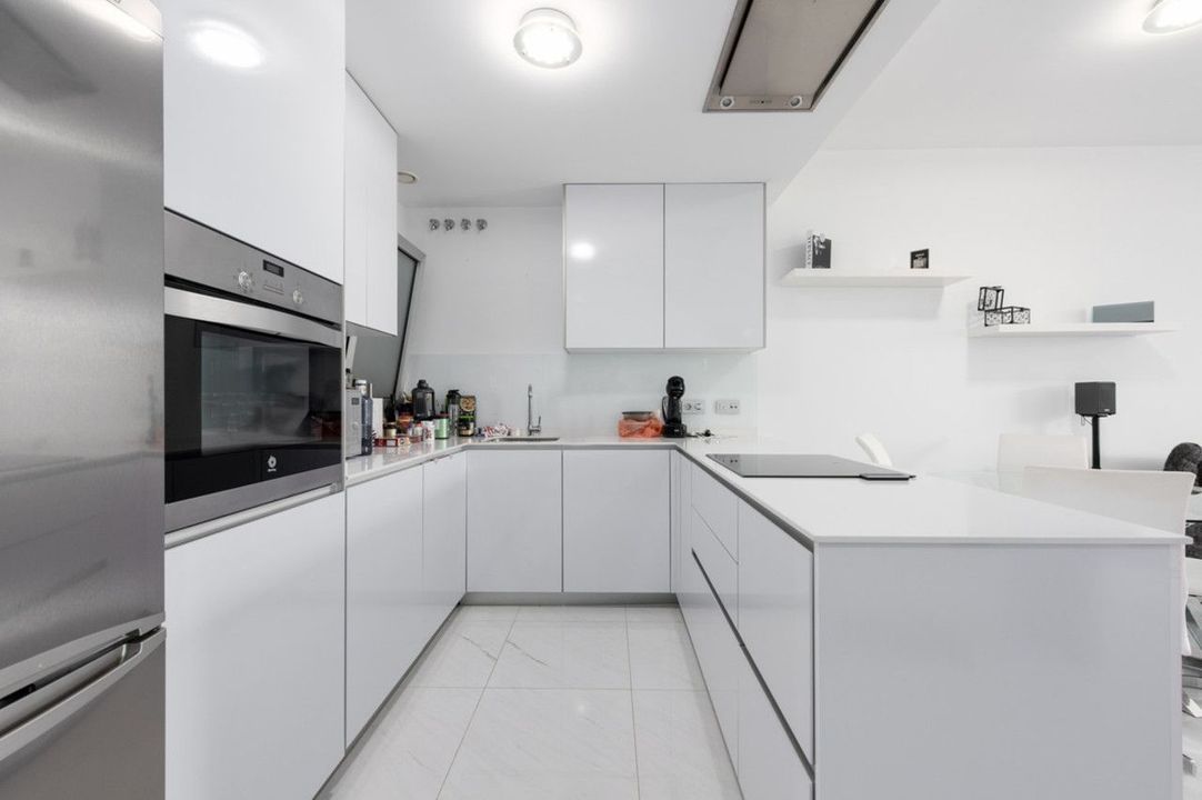 Er is een ruime woonkamer en een open keuken die volledig is uitgerust met alle apparatuur. De woning wordt verkocht samen met een ondergrondse parkeerplaats en een berging.