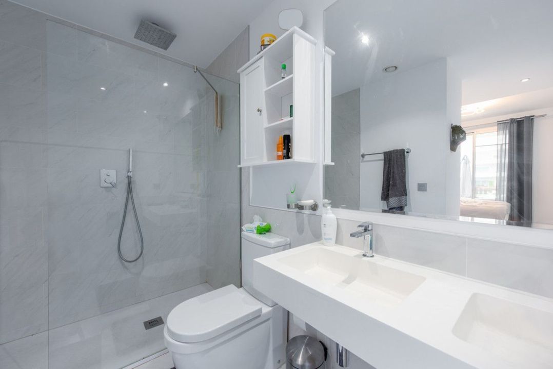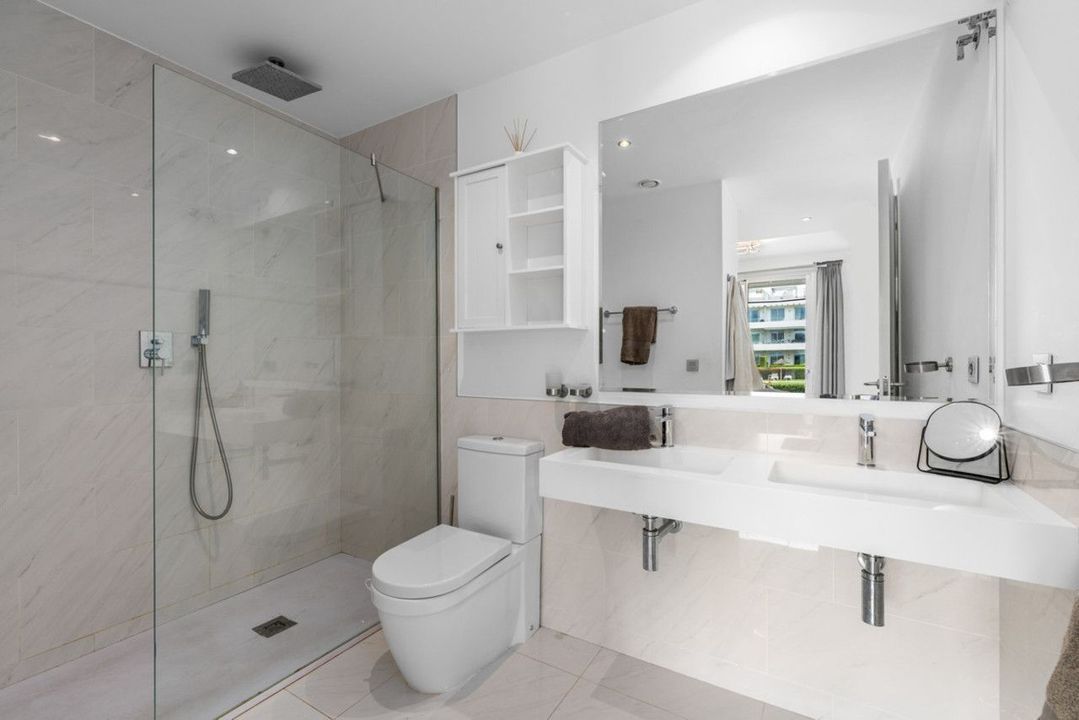 De woning heeft twee slaapkamers, beide met inbouwkasten. De hoofdslaapkamer heeft een eigen badkamer en directe toegang tot het ruime privéterras.