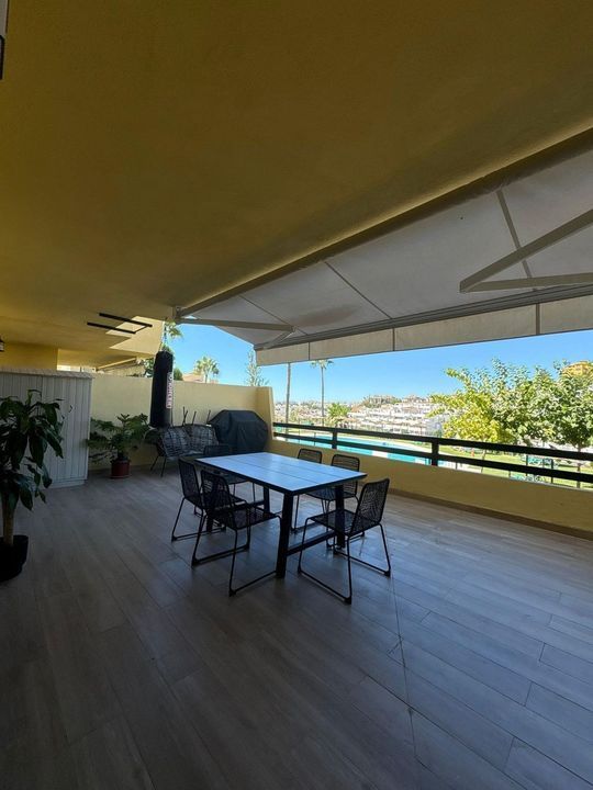 Elevate your coastal living in this elevated ground-floor apartment with an enormous terrace, nestled in the serene La Concha-Resina Golf area of Estepona. Spanning 106 m² built, this west-facing gem features a spacious living room, modern kitchen, two generous bedrooms, and two bathrooms (one en suite) – with the kitchen and bathrooms fully renovated for contemporary style and functionality. Including a garage space and storage room, it's designed for effortless comfort in a tranquil urbanization boasting lush green areas, a swimming pool, children's playground, football field, tennis courts, and padel courts. Just a quick 15-minute drive to Estepona and San Pedro, this property offers the perfect balance of peace and proximity to vibrant towns.