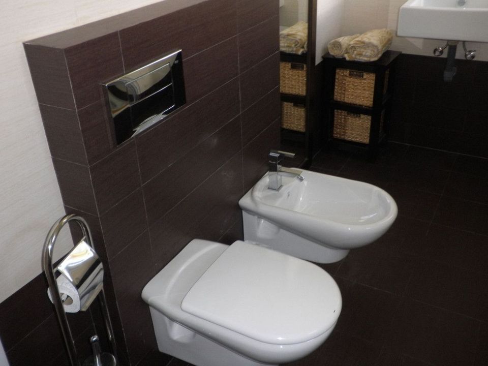 Spacious Layout Across Three Floors: Entrance hall, guest toilet, large modern fully equipped kitchen, and a generous living/dining room with direct access to a private garden and the community pool.