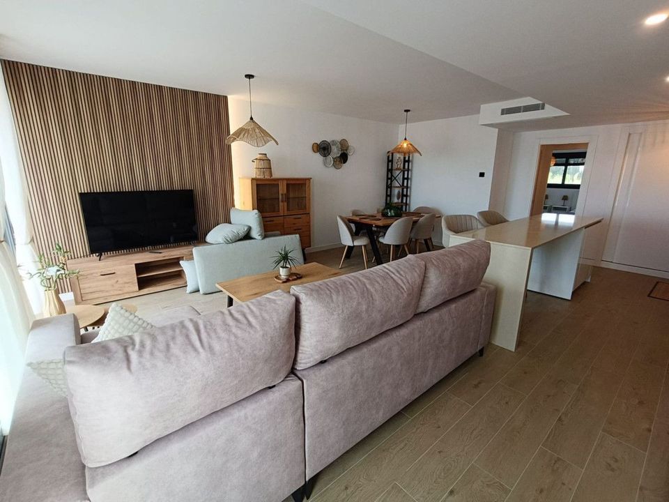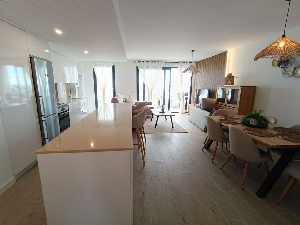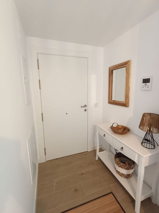 Brand new apartment for sale. Consists of 3 bedrooms, 2 bathrooms, living room with open plan kitchen and terrace with sea views. The orientation is south and the apartment is very bright. The parking space and storage room are included in the price. The apartment is located in the gated community with swimming pool.