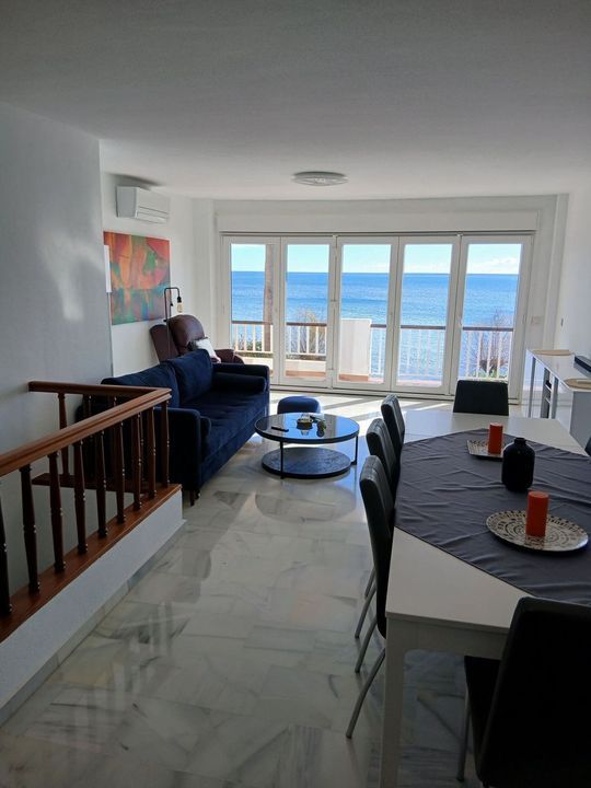A large and spacious duplex apartment situated on the beachfront to the west of Estepona, offering direct access to the beach. Comprising of 5 bedrooms and 4 bathrooms over 2 floors. On the upper floor, there are 2 bedrooms and 2 bathrooms, (Master bedroom with ensuite bathroom, kitchen with laundry room, living room / dining room area with panoramis sea views and a terrace to enjoy them. On the lower floor, there are a further 3 bedroom and 2 bathrooms, open plan kitchen with living room and dining area. There is a large terrace on this level and direct access to the promenade and beach. This level has independent access and can be closed off from the upper floor, meaning that it can be rented independently from the upper level. The property is in possession of a short term rental license (tourist license) and has been very successfully rented previously. A sound investment property with spectacular sea views.