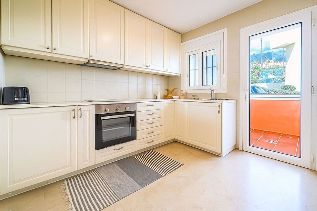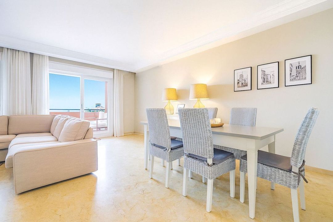 This is a fantastic property situated in Bermuda Beach, in an enviable front line beach position offering panoramic sea views. The property has been renovated to a high standard including a new kitchen and bathrooms in a modern contemporary style. The resulting effect is stunning and makes a perfect luxurious family home. The views can be appreciated from the moment you enter the property giving the "wow" factor. There is ample space on the terrace which leads off from the living room - enough for sun-beds as well as a large dining table and chairs. Upstairs are the bedrooms with the Master bedroom having an ensuite bathroom and its own spacious balcony with those incredible sea views and two further guest bedrooms sharing a bathroom. There is a private space for the car and there is a supermarket and restaurants within easy walking distance and it is only 10 minutes by car to arrive at the town of Estepona. A great value for money property in an unbeatable location. Short term rentals are permitted.