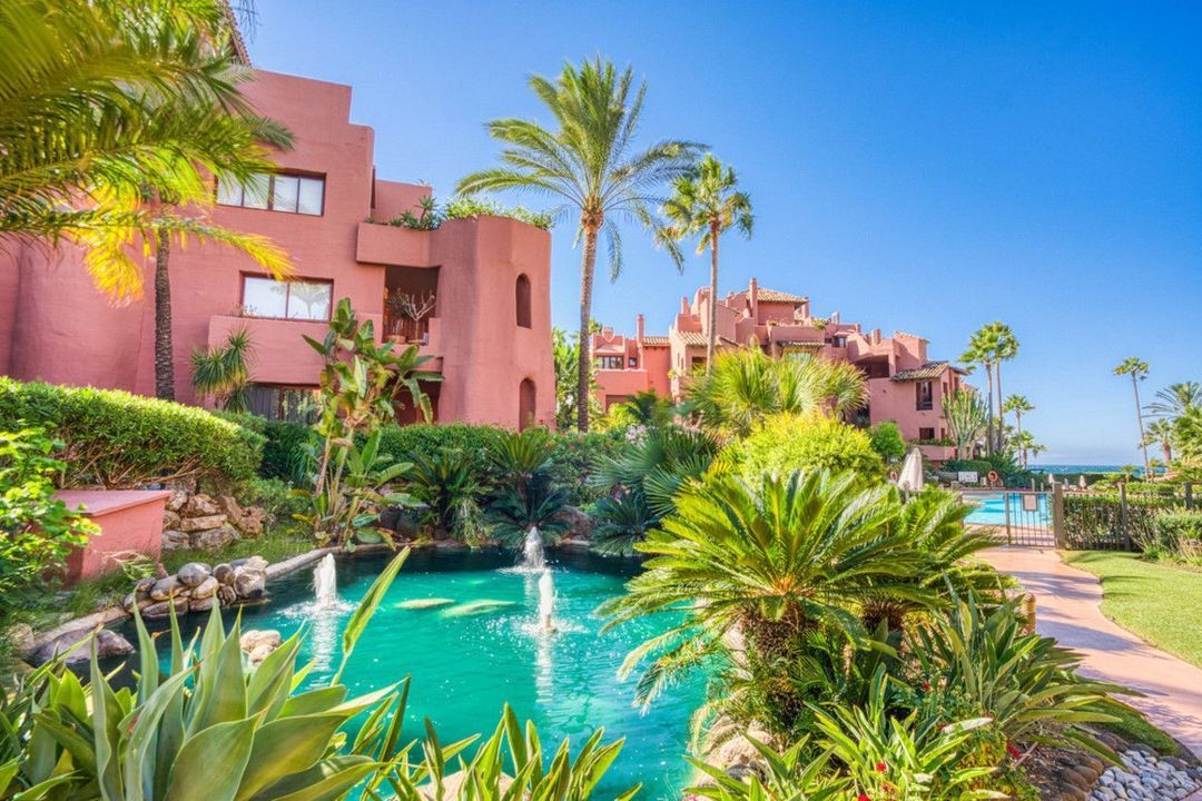 Indrukwekkend drie slaapkamer op het zuiden gericht duplex penthouse in de prestigieuze en gated beach community Menara Beach, Estepona. Dit gewilde complex heeft goed onderhouden tropische tuinen, buiten gemeenschappelijk zwembad, overdekt verwarmd zwembad en gymzaal, evenals slechts tien minuten rijden naar Puerto Banus en een korte rit naar winkels, restaurants en alle voorzieningen. De accommodatie heeft een open woon- en eethoek met openslaande deuren naar twee privé terrassen met prachtig uitzicht op zee; volledig uitgeruste keuken met aparte wasruimte; gasten suite met toegang tot het terras; gasten slaapkamer; en een gastenbadkamer. Het bovenste niveau leidt naar de indrukwekkende master suite met gewelfde plafonds en een eigen terras; op dit niveau is er een extra groot terras met BBQ gebied en een prachtig uitzicht op de gemeenschap en de zee. Andere kenmerken zijn inbouwkasten, marmeren vloeren, warme en koude airconditioning, vloerverwarming in de badkamers, eigen parkeerplaats en berging.