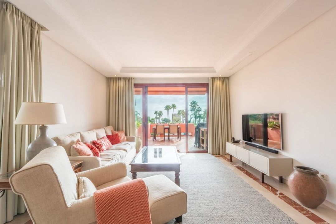 Beleef kustleven op zijn best in dit prachtige strandhoekappartement aan het front, dat een adembenemend uitzicht biedt op de Middellandse Zee en de majestueuze bergen erachter. Gelegen op de eerste verdieping van een van de meest luxe en gewilde appartementencomplexen langs Estepona's New Golden Mile, is deze residentie een waar juweeltje.