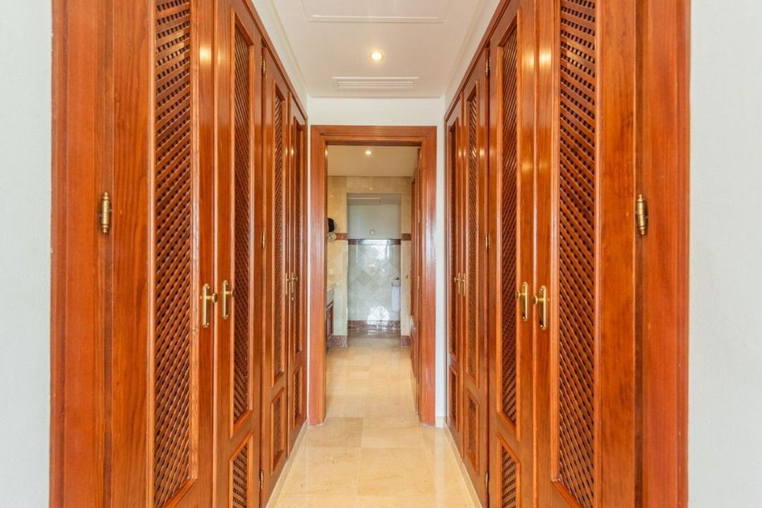 Het appartement beschikt over een gastvrije hal, een volledig uitgeruste keuken met een aangrenzende bijkeuken, een master bedroom met een eigen badkamer en directe toegang tot een van de royale terrassen, een gasten slaapkamer met een eigen klein balkon, en een gastenbadkamer. De ruime lay-out biedt de mogelijkheid om het pand om te zetten in een woning met drie slaapkamers, zoals andere soortgelijke eenheden in het complex met succes hebben gedaan. Verkocht gedeeltelijk ingericht, het bevat ook een ondergrondse garage ruimte en een berging.
