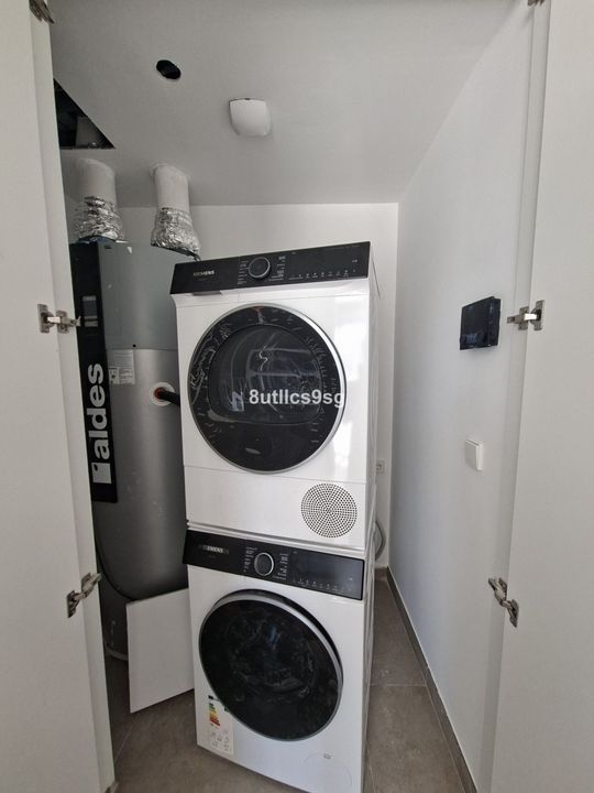 It offers three bedrooms, one en suite, plus two secondary bedrooms that share a full bathroom, a guest toilet, a laundry room and an open- plan kitchen connected to the living room with the possibility of closing it off with glass doors. The home is spacious and bright, with open spaces and large windows designed to maximize natural light and take advantage of its fantastic views of the sea and mountains. Assigned to the property a big storage room and 3 underground parking places.