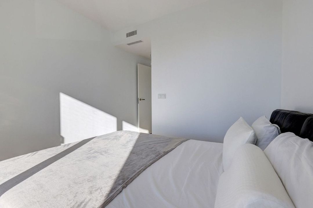 To the right of the entrance, a hallway leads to the private night area, where the main bedroom is with its en-suite bathroom, and a well-appointed bedroom, with an external bathroom, also used as a guest bathroom. Both bedrooms enjoy direct terrace access, abundant natural light, and stunning sea views.