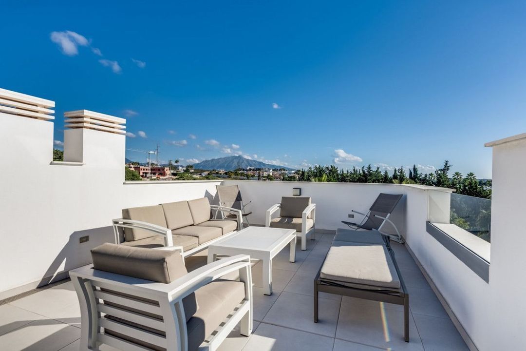 Los Miradores del Sol is a distinctive development situated on the New Golden Mile. This contemporary property features four bedrooms, three bathrooms, and an open-plan dining and living area, with direct access to the communal pool and several terraces, including a spacious rooftop terrace equipped with a BBQ area and Jacuzzi.