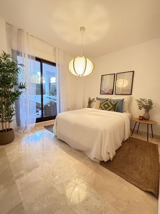 Welcome to this beautifully presented 3-bedroom, 2-bathroom ground floor apartment located in the sought-after area of Cancelada, just a 5-minute walk from the beach and close to golf courses, shops, schools, and town amenities.