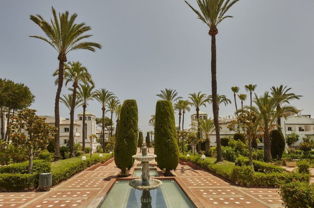 The apartment itself is a two-bedroom unit with a spacious living room and a terrace facing south, overlooking the lovely gardens where you can hear birds singing. The urbanization is stylish, Andalusian, and very well-maintained.